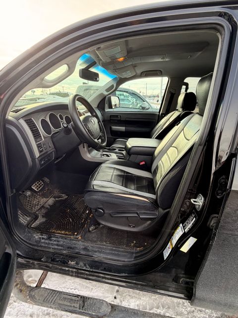 Local Car, **ALLOY WHEELS**, **WILSON WARRANTY**, **PROFESSIONALLY DETAILED**, **BACKUP CAMERA**, **BLUETOOTH**, i-Force 5.7L V8 DOHC FFV, 4WD, Black w/Fabric Seat Trim or Fabric Seat Trim w/SR5 Package or Fabric Seat Trim w/Off-Road Package or Fabric Seat Trim w/Sport Appearance Package or Heavy Duty Vinyl Seat Trim w/Work Truck, 17" TRD Forged Alloy Wheels, Bilstein Shocks, Clear Front Fog & Driving Lamps, Color Keyed Front Bumper, Fabric Seat Trim w/Rock Warrior Special Edition, Front Bucket Seats, Rock Warrior Special Edition Package, TRD Rock Warrior Graphics. Black 2010 Toyota Tundra Grade CrewMax 4WD 6-Speed Automatic Electronic i-Force 5.7L V8 DOHC FFVRecent Arrival!Awards: * 2010 [link] Best Resale Value AwardsWhen every dollar counts...count on Wilson Toyota Scion of Ames!!Reviews: * If you haul a lot of stuff and/or people, the Tundra is up for the job. Depending upon configuration, the payload can exceed one ton and towing capacity can reach 10,800 pounds. Pulling that load can be the available 5.7-liter V8 with 401 pound-feet of torque. Source: [link]