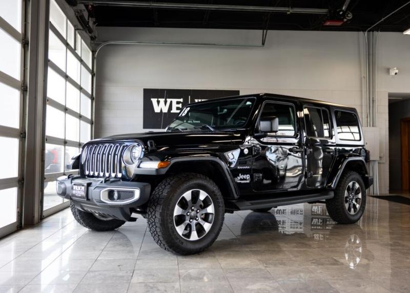Local Car, **ALLOY WHEELS**, **WILSON WARRANTY**, **PROFESSIONALLY DETAILED**, **BACKUP CAMERA**, **BLUETOOTH**. Clean CARFAX. Black Clearcoat 2018 Jeep Wrangler Unlimited Sahara 4WD 8-Speed Automatic 2.0L I4 DOHCRecent Arrival! Odometer is 3799 miles below market average!Awards: * 2018 [link] 10 Most Awarded BrandsWhen every dollar counts...count on Wilson Toyota Scion of Ames!!