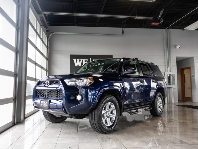 Local Car, **1 OWNER**, **ALLOY WHEELS**, **WILSON WARRANTY**, **PROFESSIONALLY DETAILED**, **BACKUP CAMERA**, **BLUETOOTH**, 4WD, Black Graphite w/Softex Synthetic Leather Seat Trim, 20" x 7.5" Unique Dual 6-Spoke Alloy Wheels, ABS brakes, Alloy wheels, Body Color Heated Mirrors, Compass, Electronic Stability Control, Front dual zone A/C, Heated door mirrors, Heated front seats, Heated/Ventilated Front Bucket Seats, Illuminated entry, Leather Seat Trim, Low tire pressure warning, Power moonroof, Remote keyless entry, Traction control. CARFAX One-Owner. Clean CARFAX. Nautical Blue Metallic 2019 Toyota 4Runner Limited 4WD 5-Speed Automatic with Overdrive 4.0L V6 SMPI DOHCRecent Arrival! Odometer is 36810 miles below market average!Awards: * 2019 [link] Best Resale Value Awards * 2019 [link] Brand Image AwardsWhen every dollar counts...count on Wilson Toyota Scion of Ames!!