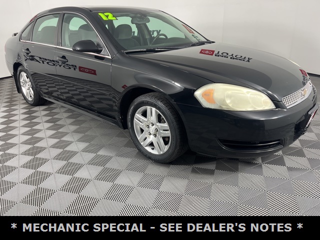 * MECHANIC SPECIAL *, * PRICE REDUCED FOR CEL AND SUSPENSION WORK NEEDED *, * LOCAL TRADE *, * SUNROOF/MOONROOF *, * ALLOY WHEELS *, * POWER SEAT *, * CLEAN CAR FAX *, * ACCIDENT FREE *, * POWER WINDOWS *, * POWER DOOR LOCKS *, * CRUISE CONTROL *, * CHEAP TRANSPORTATION *..Awards: * 2012 [link] Total Cost of Ownership AwardsReviews: * If you're looking for a roomy, reliable sedan with basic features and conservative good looks, the 2012 Chevy Impala sedan is worth a look. The suite of OnStar services provides an added measure of personal service you won't find on the Impala's competitors. Source: [link] * Simple controls; available six-passenger seating; large trunk; strong and efficient engine. Source: EdmundsServing the Cedar Valley Area for 3 Generations as one of MIDWEST'S LARGEST DEALER GROUPS including Cedar Falls, Cedar Rapids, Dubuque, Iowa City, Des Moines, West Des Moines, Davenport, Clinton, Urbandale, Grimes, Marion, Marshalltown, Mason City, Fort Dodge, Ankeny, Waterloo, Ames, Burlington, Quad Cities, Waukee, Johnston & Muscatine.