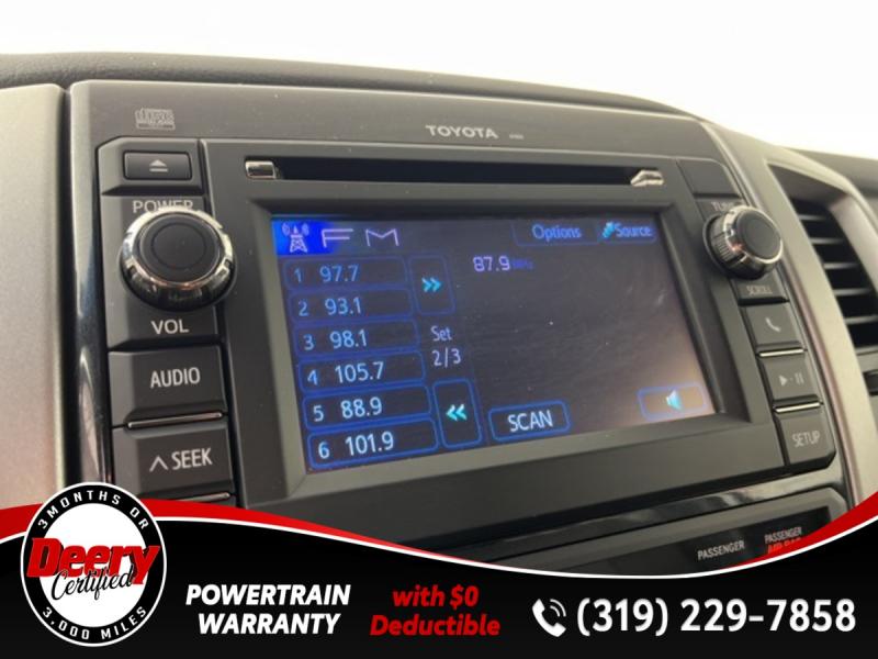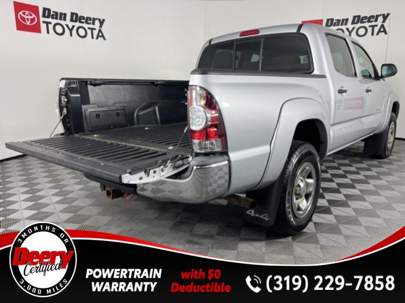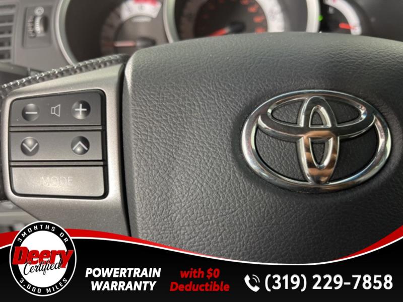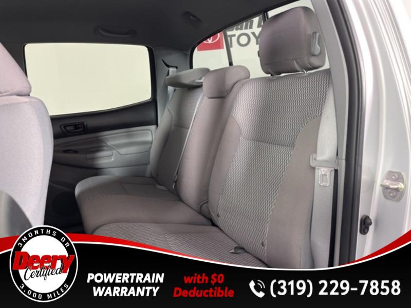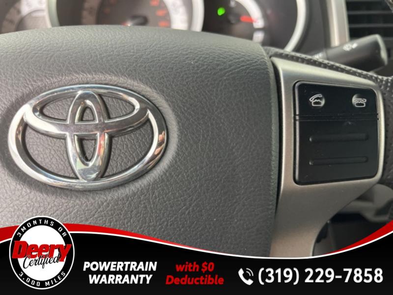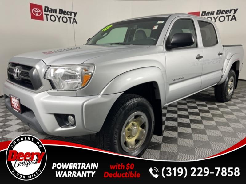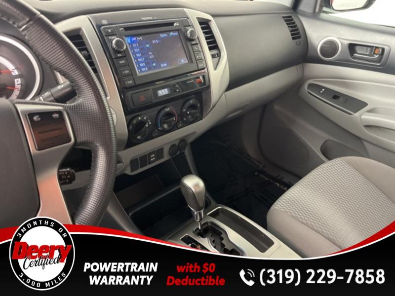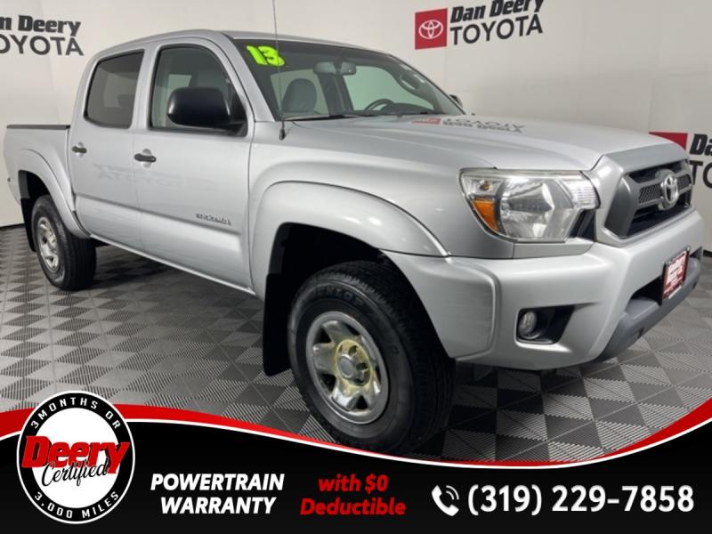 * DEERY CERTIFIED *, * LOCAL TRADE *, * 4WD *, * BACK-UP CAMERA *, * BLUETOOTH AUDIO/PHONE *, * TOW HITCH RECEIVER *, * POWER WINDOWS *, * POWER DOOR LOCKS *, * CRUISE CONTROL *, * SR5 PACKAGE *.Certification Program Details: Deery Certified Pre-Owned Details: * $0 Deductible * * 3 Months or 3,000 Miles (whichever comes first) * * Systems Covered * Gasoline/Diesel Engine, Transmission, Drive Axle, Hybrid Components, Filters, Fluids, Lubricants & Taxes and Seals and Gaskets * * See Dealer for More Information *Awards: * 2013 [link] Best Resale Value Awards * 2013 [link] Brand Image AwardsReviews: * Powerful and fuel-efficient engines; wide variety of body styles and trims; impressive build quality; full-size truck utility in a smaller package. Source: Edmunds * If you're looking for a proven pickup that is as capable as it is stylish, the 2013 Toyota Tacoma deserves your attention. Nearly as capable as a full-size pickup but without the extra bulk and fuel consumption, the Tacoma fits a lot of needs. Source: [link] the Cedar Valley Area for 3 Generations as one of MIDWEST'S LARGEST DEALER GROUPS including Cedar Falls, Cedar Rapids, Dubuque, Iowa City, Des Moines, West Des Moines, Davenport, Clinton, Urbandale, Grimes, Marion, Marshalltown, Mason City, Fort Dodge, Ankeny, Waterloo, Ames, Burlington, Quad Cities, Waukee, Johnston & Muscatine.