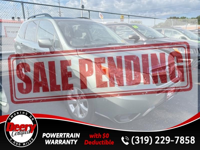 * LOCAL TRADE *, * AWD *, * HEATED SEATS *, * PANORAMIC MOONROOF/SUNROOF *, * ALLOY WHEELS *, * POWER SEAT *, * POWER WINDOWS *, * POWER DOOR LOCKS *, * CRUISE CONTROL *.Awards: * Motor Trend Automobiles of the year * 2014 [link] 10 Best SUVs Under $25,000 * 2014 [link] 10 Best All-Wheel Drive Cars & SUVs Under $25,000 * 2014 [link] 12 Best Family CarsReviews: * Building on its well-established reputation for capability, reliability, practicality and longevity, the new Forester now delivers even more comfort and convenience while offering the added benefit of standard fuel-efficient all-wheel drive * and does it at an outstanding price point. Source: [link] * Standard all-wheel drive; roomy interior; very good fuel economy; stout turbocharged engine; off-road capability still a priority. Source: EdmundsServing the Cedar Valley Area for 3 Generations as one of MIDWEST'S LARGEST DEALER GROUPS including Cedar Falls, Cedar Rapids, Dubuque, Iowa City, Des Moines, West Des Moines, Davenport, Clinton, Urbandale, Grimes, Marion, Marshalltown, Mason City, Fort Dodge, Ankeny, Waterloo, Ames, Burlington, Quad Cities, Waukee, Johnston & Muscatine.