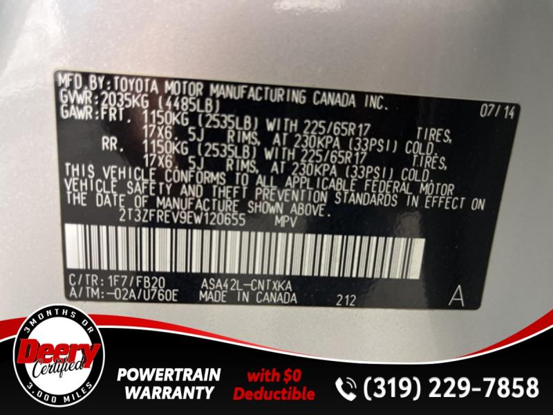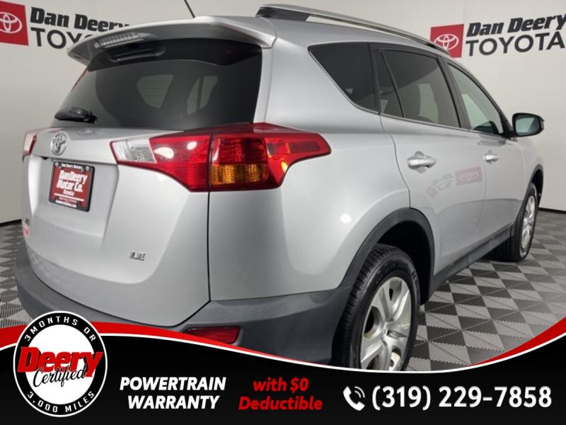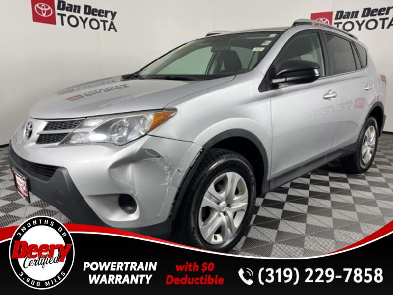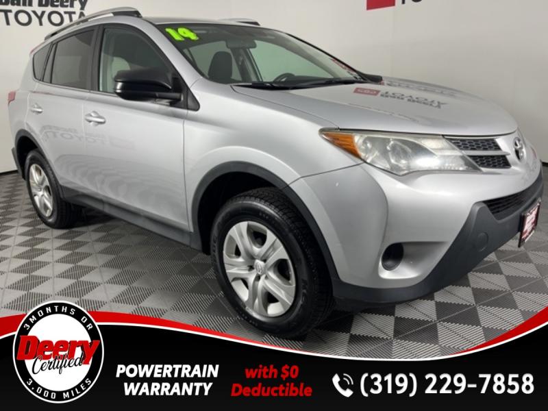 * DEERY CERTIFIED *, * ONE OWNER *, * BACK-UP CAMERA *, * LOW MILES *, * LOW MONTHLY PAYMENTS *, * BLUETOOTH AUDIO/PHONE *, * CLEAN CAR FAX *, * ACCIDENT FREE *, * POWER WINDOWS *, * POWER DOOR LOCKS *, * CRUISE CONTROL *, * SUPER RELIABLE *.Certification Program Details: Deery Certified Pre-Owned Details: * $0 Deductible * * 3 Months or 3,000 Miles (whichever comes first) * * Systems Covered * Gasoline/Diesel Engine, Transmission, Drive Axle, Hybrid Components, Filters, Fluids, Lubricants & Taxes and Seals and Gaskets * * See Dealer for More Information *Awards: * 2014 [link] 10 Best SUVs Under $25,000 * 2014 [link] Best Resale Value AwardsReviews: * If you're shopping for a compact SUV with good cargo space, a car-like ride and a low sticker price, the 2014 Toyota RAV4 is worth a look. Audio buffs will love the straightforward Entune audio system that includes apps and Bluetooth audio streaming. Those seeking an all-electric SUV will only find it in the 2014 RAV4 EV. Source: [link] * Roomy interior for people and cargo; strikes a good balance between ride comfort and sure-footed handling. Source: EdmundsServing the Cedar Valley Area for 3 Generations as one of MIDWEST'S LARGEST DEALER GROUPS including Cedar Falls, Cedar Rapids, Dubuque, Iowa City, Des Moines, West Des Moines, Davenport, Clinton, Urbandale, Grimes, Marion, Marshalltown, Mason City, Fort Dodge, Ankeny, Waterloo, Ames, Burlington, Quad Cities, Waukee, Johnston & Muscatine.