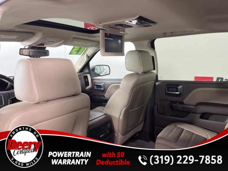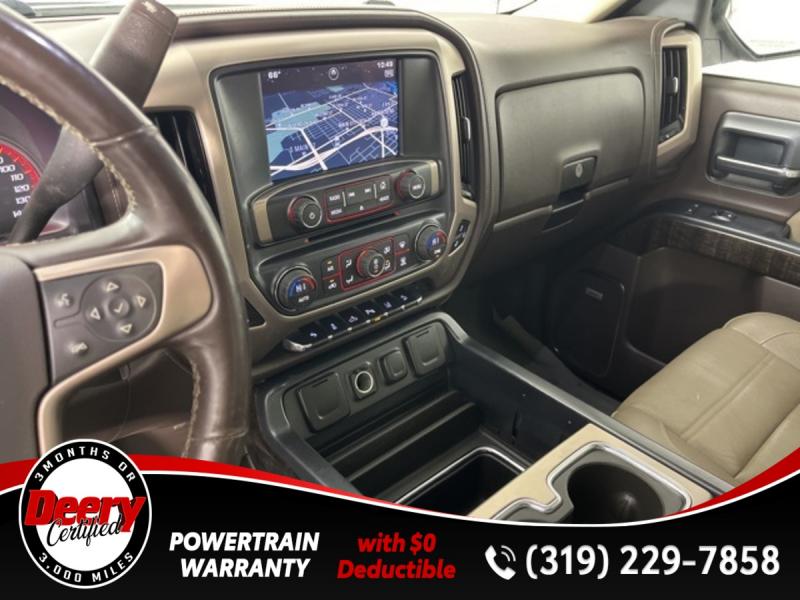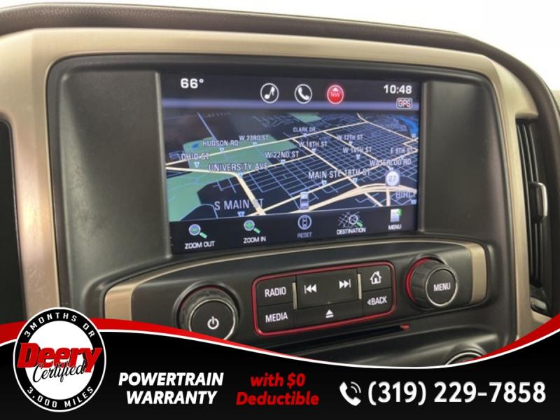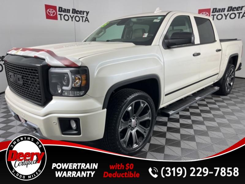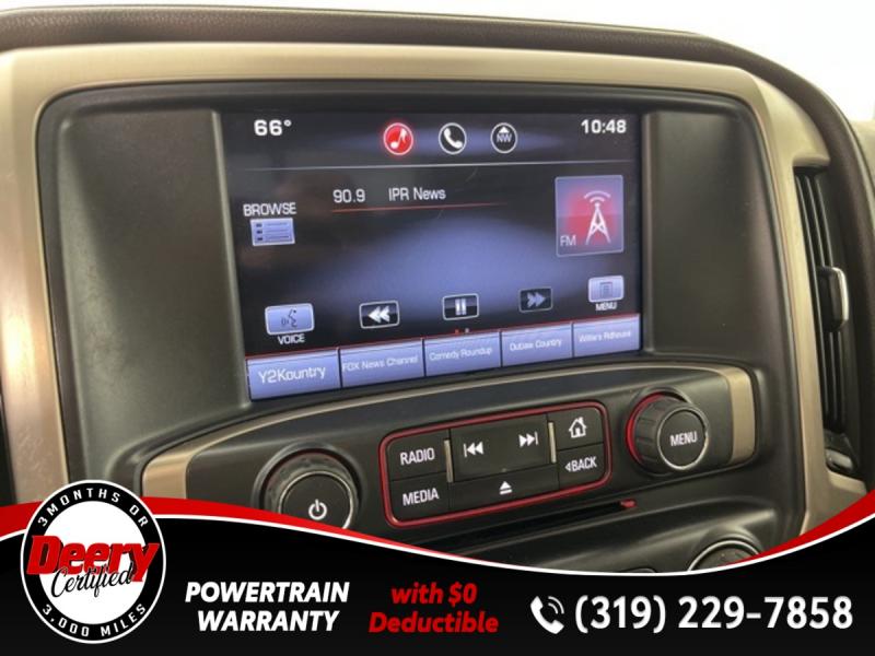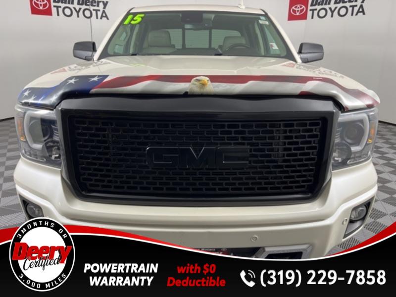 * DEERY CERTIFIED *, * LOCAL TRADE *, * 4WD *, * REAR DVD PLAYER *, * LEATHER *, * HEATED/COOLED SEATS *, * NAVIGATION *, * SUNROOF/MOONROOF *, * BACK-UP CAMERA *, * REMOTE START *, * HEATED STEERING WHEEL *, * MEMORY SEATS *, * BLUETOOTH AUDIO/PHONE *, * ALLOY WHEELS *, * REAR PARK ASSIST *, * LANE DEPARTURE ALERT/ASSIST *, * TUBE STEPS *, * BED LINER *, * TOW HITCH RECEIVER *, * POWER SEAT *, * POWER WINDOWS *, * POWER DOOR LOCKS *, * CRUISE CONTROL *.Certification Program Details: Deery Certified Pre-Owned Details: * $0 Deductible * * 3 Months or 3,000 Miles (whichever comes first) * * Systems Covered * Gasoline/Diesel Engine, Transmission, Drive Axle, Hybrid Components, Filters, Fluids, Lubricants & Taxes and Seals and Gaskets * * See Dealer for More Information *Awards: * 2015 [link] Brand Image AwardsReviews: * Powerful and fuel-efficient engines; many available configurations; well-built, comfortable interior; quiet highway ride. Source: Edmunds * If you need a half-ton pickup with the most horsepower and a class-leading 12,000-pound trailer rating, the 2015 GMC Sierra full-size pickup has you covered. Bigger-than-life styling is augmented by a plush interior and a host of cutting-edge safety and communication features. Source: [link] the Cedar Valley Area for 3 Generations as one of MIDWEST'S LARGEST DEALER GROUPS including Cedar Falls, Cedar Rapids, Dubuque, Iowa City, Des Moines, West Des Moines, Davenport, Clinton, Urbandale, Grimes, Marion, Marshalltown, Mason City, Fort Dodge, Ankeny, Waterloo, Ames, Burlington, Quad Cities, Waukee, Johnston & Muscatine.