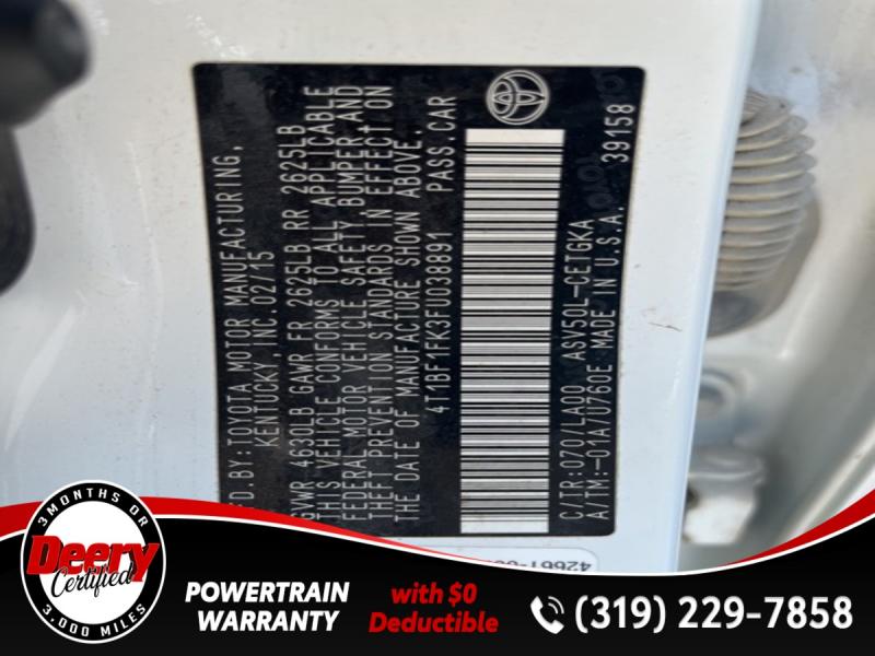 * ONE OWNER LOCAL TRADE *, * LEATHER *, * HEATED SEATS *, * BACK-UP CAMERA *, * BLUETOOTH AUDIO/PHONE *, * ALLOY WHEELS *, * POWER SEAT *, * CLEAN CAR FAX *, * ACCIDENT FREE *, * POWER WINDOWS *, * POWER DOOR LOCKS *, * CRUISE CONTROL *, * GREAT GAS MILEAGE *, * SUPER RELIABLE *.Awards: * 2015 [link] 10 Most Comfortable Cars Under $30,000 * 2015 [link] 10 Most Awarded Cars * 2015 [link] Best Buy Awards Finalist * 2015 [link] 15 Best Family Cars * 2015 [link] 10 Best Sedans Under $25,000Serving the Cedar Valley Area for 3 Generations as one of MIDWEST'S LARGEST DEALER GROUPS including Cedar Falls, Cedar Rapids, Dubuque, Iowa City, Des Moines, West Des Moines, Davenport, Clinton, Urbandale, Grimes, Marion, Marshalltown, Mason City, Fort Dodge, Ankeny, Waterloo, Ames, Burlington, Quad Cities, Waukee, Johnston & Muscatine.