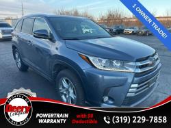 * LOCAL TRADE *, * AWD *, * LEATHER *, * HEATED/COOLED SEATS *, * NAVIGATION *, * SUNROOF/MOONROOF *, * BACK-UP CAMERA *, * BLIND SPOT MONITOR *, * 2ND ROW BUCKET SEATS *, * 3RD ROW *, * MEMORY SEATS *, * JBL AUDIO *, * BLUETOOTH AUDIO/PHONE *, * POWER LIFT GATE *, * ALLOY WHEELS *, * REAR PARK ASSIST *, * LANE DEPARTURE ALERT/ASSIST *, * TOYOTA SAFETY SENSE *, * TOW HITCH RECEIVER *, * POWER SEAT *, * POWER WINDOWS *, * POWER DOOR LOCKS *, * CRUISE CONTROL *, * RADAR/ADAPTIVE CRUISE CONTROL *, * SMART KEY ENTRY *.Awards: * 2016 [link] Best Buy Awards Finalist * 2016 [link] 16 Best Family CarsServing the Cedar Valley Area for 3 Generations as one of MIDWEST'S LARGEST DEALER GROUPS including Cedar Falls, Cedar Rapids, Dubuque, Iowa City, Des Moines, West Des Moines, Davenport, Clinton, Urbandale, Grimes, Marion, Marshalltown, Mason City, Fort Dodge, Ankeny, Waterloo, Ames, Burlington, Quad Cities, Waukee, Johnston & Muscatine.