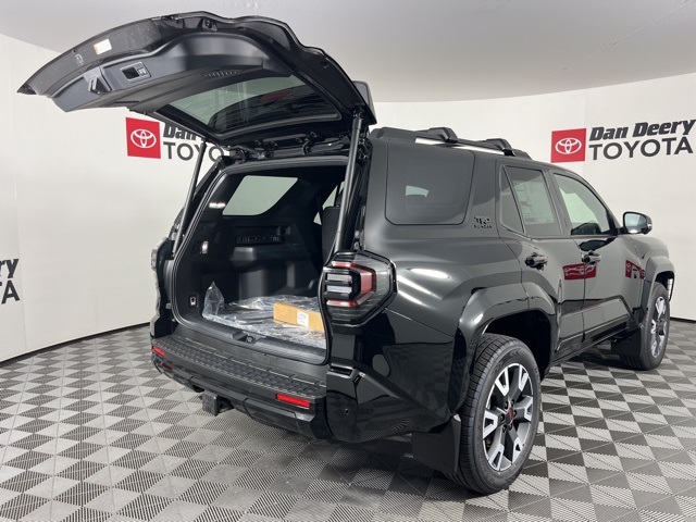 Tow Technology Package (Inside Rear-View Mirror), TRD Sport Premium, 15 Speakers, 4-Wheel Disc Brakes, 4Runner All Weather Cargo Tray (TMS), 4Runner All Weather Floor Mats (TMS), ABS brakes, Air Conditioning, Alloy wheels, AM/FM radio: SiriusXM, Anti-whiplash front head restraints, Apple CarPlay/Android Auto, Auto High-beam Headlights, Automatic temperature control, Badge Inserts, Rear TOYOTA Matte Black(TMS), Black Front Emblem Badge Overlay (TMS), Brake assist, Bumpers: body-color, Color Keyed Bodyside Molding (TMS), Connected Services Trial Offering (TMS), Driver door bin, Driver vanity mirror, Dual front impact airbags, Dual front side impact airbags, Electronic Stability Control, Emergency communication system: Safety Connect (1-year trial), Exterior Parking Camera Rear, Front & Rear Molded Black 4Runner Mudguards, Front anti-roll bar, Front Bucket Seats, Front Center Armrest, Front Color Keyed Door Edge Guards (TMS), Front dual zone A/C, Front fog lights, Front Integrated Dash Cam System (TMS), Front reading lights, Front wheel independent suspension, Full Coverage Black Eco Key Glove (TMS), Gloss Black Roof Rail Cross Bars (TMS), Heated & Ventilated Front Bucket Seats, Heated door mirrors, Heated front seats, Illuminated entry, Interior D Pillar Cargo Lights (TMS), Interior Gray Door Panel Protectors (TMS), Knee airbag, Leather Shift Knob, Leather steering wheel, Low tire pressure warning, Memory seat, Navigation System, Occupant sensing airbag, Outside temperature display, Overhead airbag, Overhead console, Panic alarm, Passenger door bin, Passenger vanity mirror, Power door mirrors, Power driver seat, Power passenger seat, Power steering, Power windows, Radio: Premium 14" Audio, Rear anti-roll bar, Rear seat center armrest, Rear side impact airbag, Rear window defroster, Rear window wiper, Remote keyless entry, Security system, SiriusXM Trial Offering: 33 Months (TMS), SofTex Seat Trim, Speed control, Speed-sensing steering, Split folding rear seat, Spoiler, Steering wheel mounted audio controls, Tachometer, Telescoping steering wheel, Tilt steering wheel, Traction control, Trip computer, Variably intermittent wipers, Ventilated front seats, and Wheels: 20" Dark-Gray Painted Alloy.0202 2025 Toyota 4Runner TRD Sport 4D Sport Utility 2.4L 4-Cylinder 19/25 City/Highway MPG 8-Speed Automatic 4WD