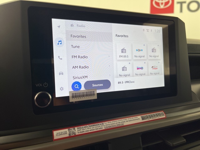 3.583 Axle Ratio, 4-Wheel Disc Brakes, ABS brakes, Air Conditioning, All Weather Floor Liners (TMS), Alloy wheels, AM/FM radio: SiriusXM, Anti-whiplash front head restraints, Apple CarPlay/Android Auto, Auto High-beam Headlights, Auto-dimming Rear-View mirror, Black Badge Overlay (TMS), Brake assist, Bumpers: body-color, Door Edge Guard (TMS), Driver door bin, Dual front impact airbags, Dual front side impact airbags, Electronic Stability Control, Emergency communication system: Safety Connect (1-year trial), Exterior Parking Camera Rear, Four wheel independent suspension, Front anti-roll bar, Front Bucket Seats, Front Center Armrest, Front fog lights, Front reading lights, Fully automatic headlights, Heated door mirrors, Illuminated entry, JBL Premium Audio, Knee airbag, Low tire pressure warning, Occupant sensing airbag, Outside temperature display, Overhead airbag, Overhead console, Panic alarm, Passenger door bin, Power door mirrors, Power steering, Power windows, Rear step bumper, Rear window defroster, Remote keyless entry, Speed control, Speed-sensing steering, Split folding rear seat, Spray-On Bed Liner (TMS), Steering wheel mounted audio controls, Tachometer, Telescoping steering wheel, Tilt steering wheel, Traction control, Trip computer, and Variably intermittent wipers.Recent Arrival! 01l7 2025 Toyota Tacoma 4D Double Cab 2.4L 4-Cylinder 8-Speed Automatic 4WD
