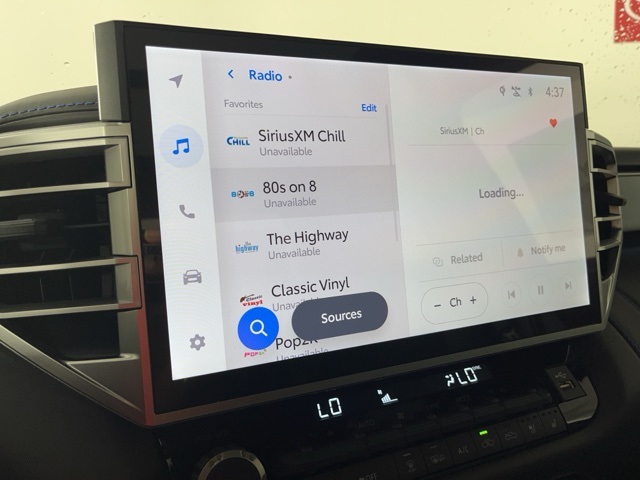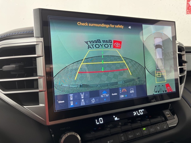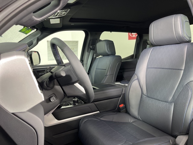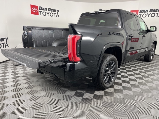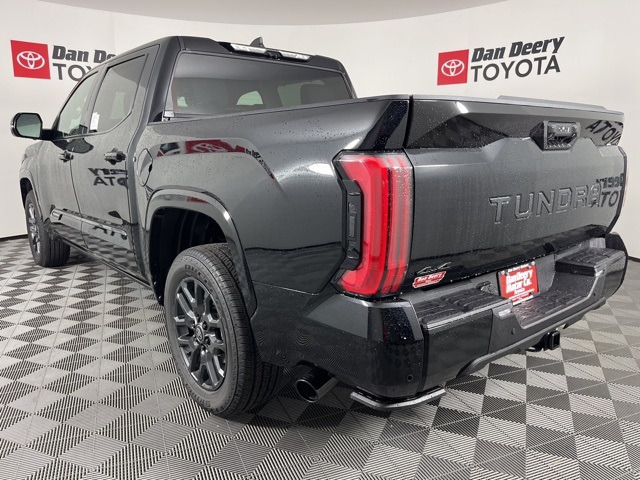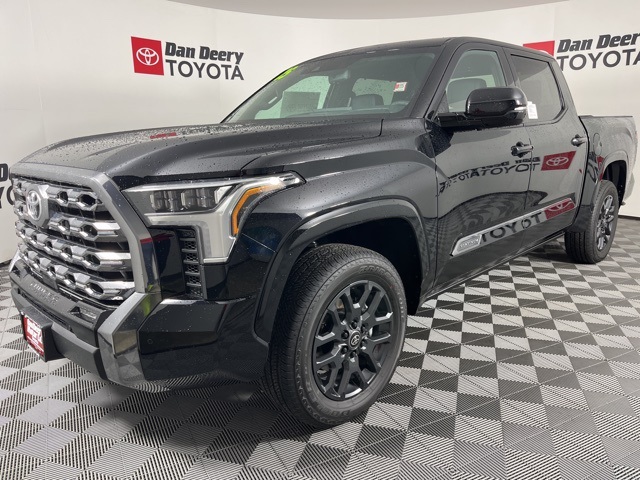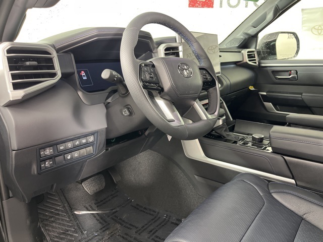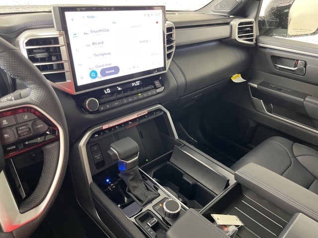 * 14 INCH INFOTAINMENT SCREEN *, * 4WD *, * HEADS-UP DISPLAY *, * LEATHER *, * HEATED/COOLED SEATS *, * NAVIGATION *, * PANORAMIC MOONROOF/SUNROOF *, * BACK-UP CAMERA *, * BLIND SPOT MONITOR *, * REMOTE START *, * REMOTE CONNECT *, * JBL AUDIO *, * BLUETOOTH AUDIO/PHONE *, * BLACK ALLOY WHEELS *, * 14" INFOTAINMENT SCREEN *, * PLATINUM PACKAGE *.10-Way Pwr Adj Heated and Ventilated Front Seats, 12 Speakers, 3.31 Axle Ratio, 4-Wheel Disc Brakes, ABS brakes, Air Conditioning, All Weather Floor Liners (TMS), Alloy wheels, AM/FM radio: SiriusXM, Apple CarPlay/Android Auto, Auto High-beam Headlights, Auto-dimming door mirrors, Auto-dimming Rear-View mirror, Automatic temperature control, Brake assist, Bumpers: body-color, Delay-off headlights, Driver door bin, Driver vanity mirror, Dual front impact airbags, Dual front side impact airbags, Electronic Stability Control, Emergency communication system: Safety Connect (10-year trial), Exterior Parking Camera Rear, Front anti-roll bar, Front Bucket Seats, Front Center Armrest, Front dual zone A/C, Front fog lights, Front reading lights, Front wheel independent suspension, Fully automatic headlights, Garage door transmitter: HomeLink, Head Up Display (HUD), Heated door mirrors, Heated front seats, Heated rear seats, Heated steering wheel, Illuminated entry, Knee airbag, Leather Shift Knob, Leather steering wheel, Low tire pressure warning, Memory seat, Navigation System, Occupant sensing airbag, Outside temperature display, Overhead airbag, Overhead console, Panic alarm, Passenger door bin, Passenger vanity mirror, Power door mirrors, Power driver seat, Power moonroof, Power passenger seat, Power Running Boards, Power steering, Power windows, Premium Leather Seat Trim, Radio data system, Radio: Audio Multimedia System, Rain sensing wipers, Rear reading lights, Rear seat center armrest, Rear step bumper, Rear window defroster, Remote keyless entry, Safety Connect, Security system, Speed control, Speed-sensing steering, Split folding rear seat, Stainless Steel Door Edge Guards (TMS), Steering wheel memory, Steering wheel mounted audio controls, Tachometer, Tailgate Insert - Black (TMS), Telescoping steering wheel, Tilt steering wheel, Traction control, Trip computer, Turn signal indicator mirrors, Variably intermittent wipers, Ventilated front seats, Ventilated rear seats, Voltmeter, and Wheels: 20" Dark Painted Alloy.Midnight Black Metallic 2025 Toyota Tundra Platinum 4D CrewMax 3.4L V6 17/22 City/Highway MPG 10-Speed Automatic 4WD