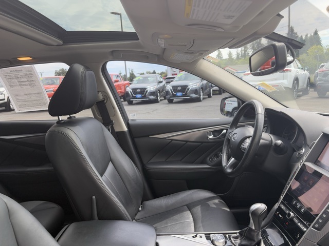 Clean CARFAX. Premium 3.7L V6 DOHC 24V MOONROOF, SUNROOF, 14 Speakers, Automatic temperature control, BOSE Centerpoint Simulated Surround, Cargo Package, Heated Front Seats, Heated front seats, Heated steering wheel, Illuminated Kick Plates, INFINITI InTouch Navigation System, INFINITI Studio on Wheels by Bose, Leather steering wheel, Leather-Appointed Seats, Navigation Package, Power moonroof, Power passenger seat, Remote keyless entry.19/27 City/Highway MPGAwards: * 2015 IIHS Top Safety Pick+Reviews: * Many standard high-tech electronic and safety features; nicely detailed interior; excellent fuel economy from available hybrid model; muscular V6 engine; roomy trunk. Source: Edmunds * The 2015 INFINITI Q50 strengths are its handling and power, its interior luxury and comfort, and its very reasonable price when compared to other luxury brands. It's a triple threat that's hard to top. Source: [link]