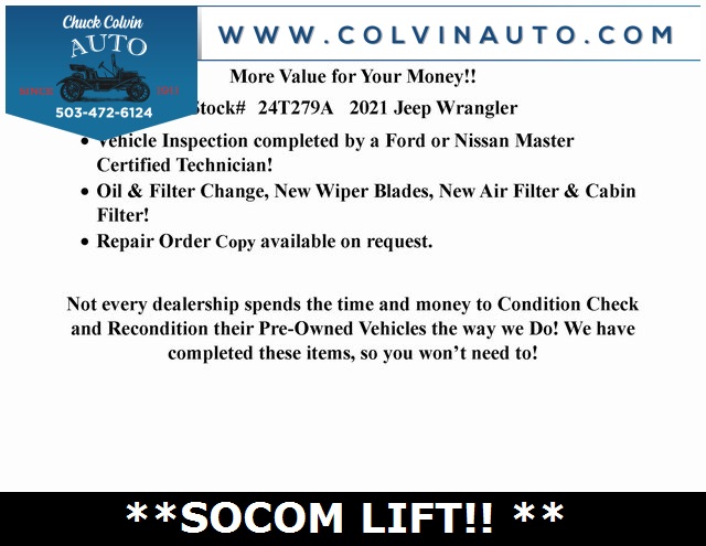 Clean CARFAX. Unlimited Sahara 2.0L I4 DOHC CUSTOMER PREFERRED PACKAGE 22G, COLD WEATHER GROUP, FRONT HEATED SEATS, REMOTE START, UCONNECT 4C NAVIATION AND SOUND GROUP, OFF ROAD INFORMATION PACKAGE, PUSH BUTTON START, BACKUP CAMERA, ALPINE SOUND, APPLE CAR PLAY, BODY-COLORED FREEDOM TOP 3 PIECE HARDTOP, SOCOM PACKAGE.Odometer is 23805 miles below market average!***High Quality New & Used Cars, Trucks and SUVs for sale near me at Chuck Colvin Ford Nissan! Dealership serving McMinnville, Portland, Salem, Hillsboro, Beaverton, Vancouver WA & surrounding areas. Call [phone] to schedule a test drive today!*** Green Light Inspected and Reconditioned,*** Chuck Colvin Ford & Nissan In Business Since 1911!.
