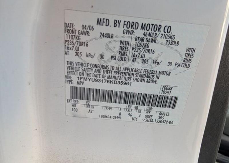 Odometer: 186,184 mlSPECIFICATIONS OF THIS FORD ESCAPE