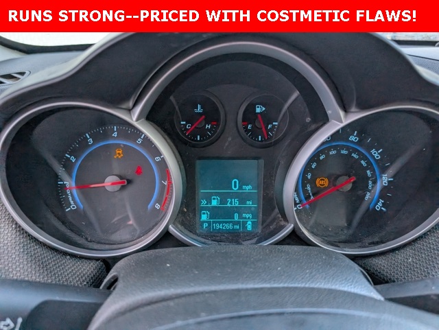 This Cruze is a local trade on a newer Edge! It's priced as a ** COSMETIC SPECIAL ** with some body damage. It does run and drive strong and the previous owner brought it from Minnesota to trade. LOCAL TRADE, CRUISE CONTROL, POWER WINDOWS, POWER LOCKS, ALUMINUM/ALLOY WHEELS, MECHANIC / COSMETIC SPECIAL, PRICE REDUCED BASED ON CONDITION, GAS SAVER, ACCIDENT FREE, CLEAN AUTOCHECK, VISIT [link] the Cedar Valley Area for 3 Generations as one of MIDWEST'S LARGEST DEALER GROUPS including Cedar Rapids, Dubuque, Iowa City, Des Moines, West Des Moines, Davenport, Clinton, Urbandale, Marion, Marshalltown, Mason City, Fort Dodge, Ankeny, Waterloo, Ames, Burlington, Quad Cities, Waukee, Johnston & Muscatine. Recent Arrival! 26/38 City/Highway MPGAwards: * 2012 IIHS Top Safety Pick * 2012 [link] 10 Most Comfortable Cars Under $30,000Reviews: * * Excellent fuel economy * Cruze ECO model gets 42 mpg on the highway * Turbo model now available with 6-speed manual transmission * Quiet cabin Source: [link] * Upscale interior design; lively yet efficient turbocharged engine; Eco model's high fuel economy; secure handling; top safety scores; big trunk. Source: Edmunds