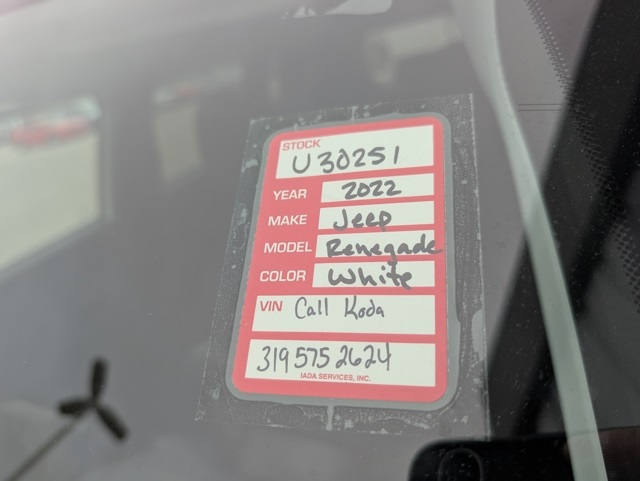 This Renegade was bought here brand new and only has 10,000 original miles! It's nicely equipped with heated seats, remote start, and much more! It's in like-new condition.LOCAL TRADE, ONE OWNER, HEATED SEATS, HEATED STEERING WHEEL, NAVIGATION, REMAINING FULL FACTORY WARRANTY, BOUGHT HERE SERVICED HERE, 4X4, BLIND SPOT DETECTION, DUAL CLIMATE CONTROL, REMOTE START, CRUISE CONTROL, BLUETOOTH, APPLE CARPLAY / ANDROID AUTO, POWER SEAT, POWER WINDOWS, POWER LOCKS, BACK-UP CAMERA, ALUMINUM/ALLOY WHEELS, ADVANCED SAFETY FEATURES, GREAT PAYMENT OPTIONS, GAS SAVER, CLEAN AUTOCHECK, VISIT [link] the Cedar Valley Area for 3 Generations as one of MIDWEST'S LARGEST DEALER GROUPS including Cedar Rapids, Dubuque, Iowa City, Des Moines, West Des Moines, Davenport, Clinton, Urbandale, Marion, Marshalltown, Mason City, Fort Dodge, Ankeny, Waterloo, Ames, Burlington, Quad Cities, Waukee, Johnston & Muscatine. Recent Arrival! Odometer is 16747 miles below market average! 23/29 City/Highway MPG