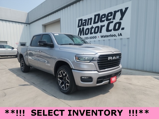 Factory MSRP: $69,170 $15,218 off MSRP! 1500 Laramie, 3.0L I6, 4WD, Billet Silver Metallic Clearcoat. We are proud to sell and service your new Ram at Dan Deery Motors in Waterloo. We pride ourselves in transparent pricing and great customer service. Please contact our Sales staff to confirm you qualify for the rebates listed on our website as they can vary based on where you live. Billet Silver Metallic Clearcoat Ram 1500 4D Crew Cab Laramie 3.0L I6 17/24 City/Highway MPG 8-Speed Automatic 4WD Awards: * Motor Trend Automobiles of the year Price includes all applicable incentives, some customers may not qualify: $2000 - 2025 National Overaged Select Inventory Bonus Cash. Exp. 11/03/2025 10% Msrp - 2025 National 10% Below MSRP . Exp. 11/03/2025 $1,000 Trade Assist Rebate, must have trade 2008 or newer, good through Dec. 31st 2025