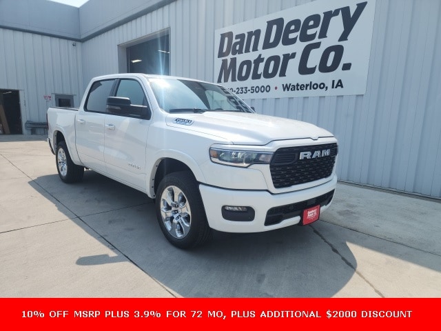 Factory MSRP: $60,455 $12,855 off MSRP! 1500 Big Horn/Lone Star, 3.6L V6 24V VVT, 4WD, Bright White Clearcoat. New Price! We are proud to sell and service your new Ram at Dan Deery Motors in Waterloo. We pride ourselves in transparent pricing and great customer service. Please contact our Sales staff to confirm you qualify for the rebates listed on our website as they can vary based on where you live. Bright White Clearcoat Ram 1500 4D Crew Cab Big Horn/Lone Star 3.6L V6 24V VVT 19/24 City/Highway MPG 8-Speed Automatic 4WD Price includes all applicable incentives, some customers may not qualify: $1250 - 2025 Midwest BC SFS Bonus Cash . Exp. 12/01/2025 $2000 - 2025 National Holiday Select Inventory Bonus Cash. Exp. 12/01/2025 $750 - 2025 Midwest BC Regional Bonus Cash. Exp. 12/01/2025 10% Msrp - 2025 National 10% Below MSRP . Exp. 12/01/2025 $1,000 Trade Assist Rebate, must have trade 2008 or newer, good through Dec. 31st 2025