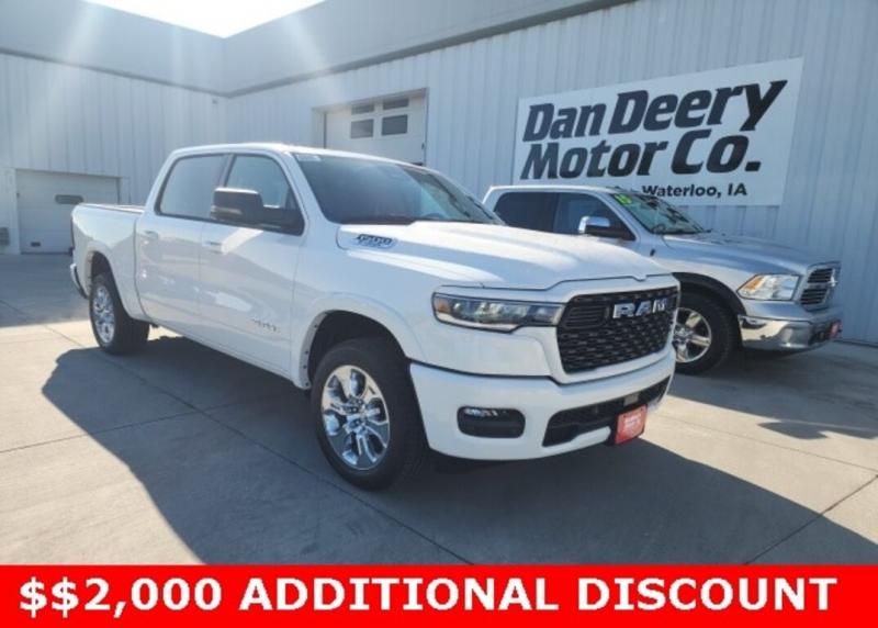 Factory MSRP: $59,135 $11,754 off MSRP! 1500 Big Horn/Lone Star, 3.6L V6 24V VVT, 4WD, Bright White Clearcoat. New Price! Recent Arrival! We are proud to sell and service your new Ram at Dan Deery Motors in Waterloo. We pride ourselves in transparent pricing and great customer service. Please contact our Sales staff to confirm you qualify for the rebates listed on our website as they can vary based on where you live. Bright White Clearcoat Ram 1500 4D Crew Cab Big Horn/Lone Star 3.6L V6 24V VVT 19/24 City/Highway MPG 8-Speed Automatic 4WD Price includes all applicable incentives, some customers may not qualify: $2000 - 2025 National Select Inventory Bonus Cash w/ 3FV . Exp. 02/02/2026 10% Msrp - 2025 National 10% Below MSRP . Exp. 02/02/2026 $1,000 Trade Assist Rebate, must have trade 2010 or newer, good through Dec. 31st 2026