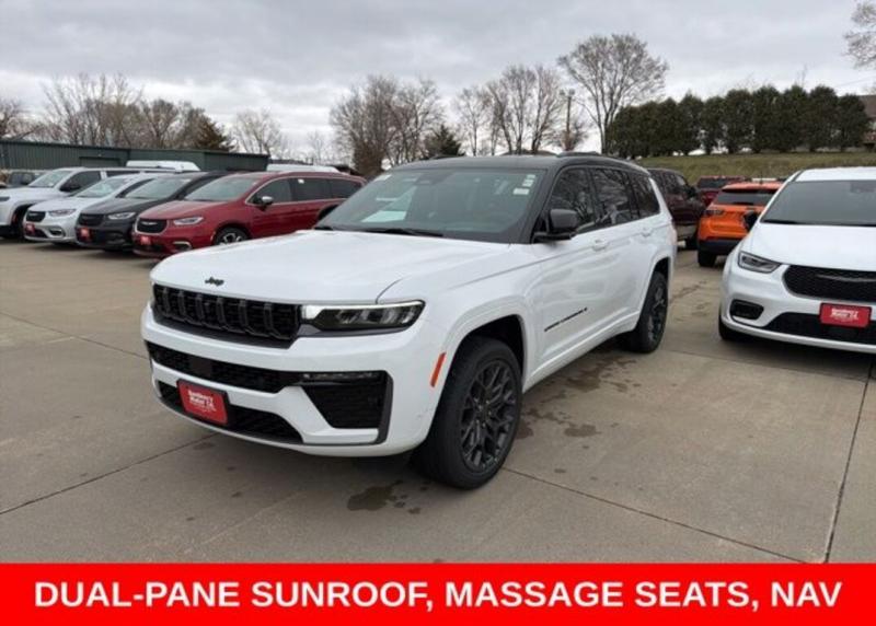 Discover the pinnacle of modern SUV luxury with the 2026 Jeep Grand Cherokee L Summit Obsidian. This stunning vehicle, with its striking White/off-white exterior and meticulously crafted interior, is the embodiment of refined sophistication and uncompromising capability. - Obsidian Package - Exterior Accents Dark Neutral Metallic - Painted Door Cladding - Wheels: 21' x 9.0' Black Painted Aluminum Powered by the impressive 2.0L Hurricane 4 Turbo with ESS engine and paired with an 8-Speed Automatic transmission, this Grand Cherokee L delivers a thrilling and efficient driving experience. With 20 MPG in the city and 25 MPG on the highway, you'll enjoy the perfect balance of power and fuel economy. But the true allure of this vehicle lies in its exceptional attention to detail and premium features. Indulge in the luxurious Palermo Leather Seats, the advanced Heads-Up Display, and the state-of-the-art Uconnect 5 Nav system with a 12.3' display. Experience the ultimate in comfort and connectivity, with 19 premium speakers, a panoramic sunroof, and a host of advanced safety technologies. Step inside and be captivated by the genuine wood accents, the heated and ventilated front and rear seats, and the power-folding third-row seating. This Grand Cherokee L is the epitome of refined utility, seamlessly blending style, comfort, and capability to elevate your driving experience. Discover the perfect balance of luxury and performance in the 2026 Jeep Grand Cherokee L Summit Obsidian. Visit our showroom today and let us demonstrate how this exceptional vehicle can transform your daily commute and weekend adventures. Experience the difference that true craftsmanship and attention to detail can make. Serving the Cedar Valley Area for 3 Generations as one of MIDWEST'S LARGEST DEALER GROUPS including Cedar Rapids, Dubuque, Iowa City, Des Moines, West Des Moines, Davenport, Clinton, Urbandale, Marion, Marshalltown, Mason City, Fort Dodge, Ankeny, Waterloo, Ames, Burlington, Quad Cities, Waukee, Johnston Muscatine. Price includes all applicable incentives, some customers may not qualify: $1000 - 2026 National Stellantis Loyalty Bonus Cash . Exp. 04/30/2026 $1500 - 2026 National Retail Bonus Cash . Exp. 04/30/2026 $1,000 Trade Assist Rebate, must have trade 2010 or newer, good through Dec. 31st 2026