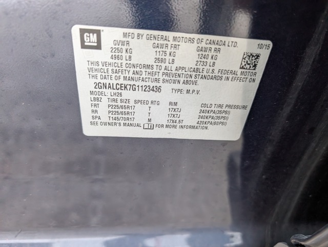 - Vin Number 2GNALCEK7G1123436