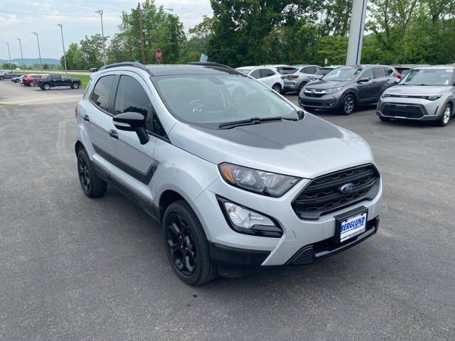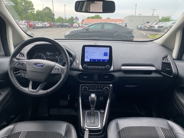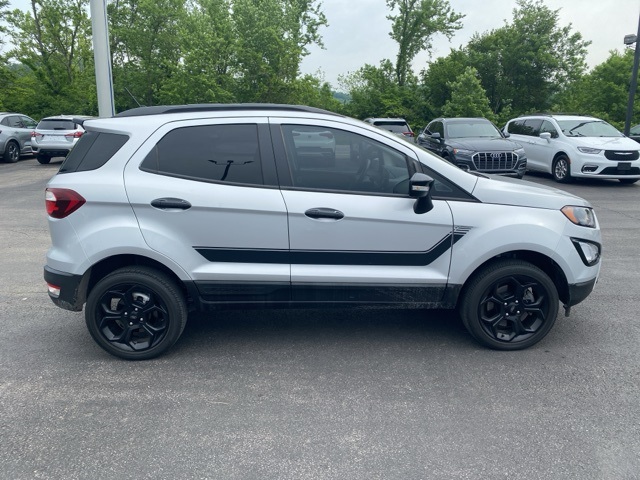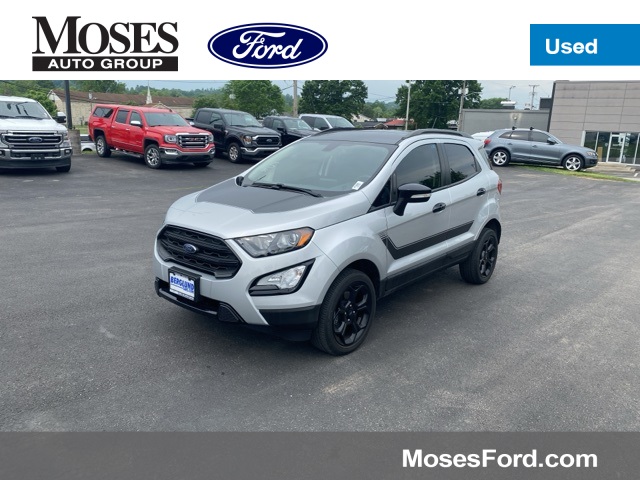 Recent Arrival! Priced below KBB Fair Purchase Price! 23/29 City/Highway MPG Odometer is 12026 miles below market average!CARFAX One-Owner.Moses Auto Group utilizes "MARKET VALUE PRICING" on all the vehicles in our inventory. We use real-time market data to ensure that all our customers enjoy a hassle-free buying experience and the best value possible. That, along with the largest selection of over 3500 quality cars, trucks, and SUVs in the tristate WV, KY, and OH area (as well as the surrounding cities of Charleston, Huntington, and Morgantown), has our loyal client base coming back again and again. Come to Moses today and experience the car-buying process as it should be- Driven By You.2022 Ford EcoSport SESThis 2022 Ford EcoSport is well equipped with the following equipment...Equipment Group 300A, Interior Protection Package (Cargo Mat and Front & Rear Floor Liners), 3.51 Axle Ratio, 4-Wheel Disc Brakes, 7 Speakers, ABS brakes, ActiveX Seating Material Heated Front Bucket Seats, Air Conditioning, Alloy wheels, AM/FM radio: SiriusXM, AppLink/Apple CarPlay and Android Auto, Auto-dimming Rear-View mirror, Automatic temperature control, Brake assist, Bumpers: body-color, Compass, Delay-off headlights, Driver door bin, Driver vanity mirror, Dual front impact airbags, Dual front side impact airbags, Electronic Stability Control, Emergency communication system: SYNC 3 911 Assist, Engine Block Heater, Exterior Parking Camera Rear, Front anti-roll bar, Front Bucket Seats, Front Center Armrest, Front fog lights, Front reading lights, Front wheel independent suspension, Fully automatic headlights, Heated door mirrors, Heated front seats, Heated steering wheel, Hood/Side/Tailgate Sport Decal, Illuminated entry, Knee airbag, Leather Shift Knob, Low tire pressure warning, Navigation System, Occupant sensing airbag, Outside temperature display, Overhead airbag, Overhead console, Panic alarm, Passenger door bin, Passenger vanity mirror, Power door mirrors, Power driver seat, Power moonroof, Power steering, Power windows, Radio data system, Radio: AM/FM/MP3 Stereo, Rain sensing wipers, Rear anti-roll bar, Rear Parking Sensors, Rear seat center armrest, Rear side impact airbag, Rear window defroster, Rear window wiper, Remote keyless entry, Roof rack: rails only, SiriusXM Radio, SiriusXM Traffic & Travel Link, Speed control, Speed-sensing steering, Split folding rear seat, Spoiler, Steering wheel mounted audio controls, SYNC 3 Communications & Entertainment System, Tachometer, Telescoping steering wheel, Tilt steering wheel, Traction control, Trip computer, Turn signal indicator mirrors, Variably intermittent wipers, and Wheels: 17" Black-Painted Aluminum Want your customer experience to be as unrivaled as your next BMW? Discover the Difference at Moses BMW where friendly, professional associates simplify your buying experience and provide real value. See our Google and [link] reviews to hear why even out-of-state customers say they will drive over 500 miles again to experience our friendly and fast service. Call [phone] today to set your VIP appointment with one of our experienced managers to help you find your perfect match today.