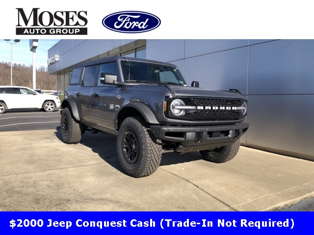 Priced below KBB Fair Purchase Price!CARFAX One-Owner. Clean CARFAX.Bronco Wildtrak, 4D Sport Utility, 2.7L EcoBoost V6, 10-Speed Automatic, 4WD, Carbonized Gray Metallic, Black Onyx, ABS brakes, Compass, Electronic Stability Control, Heated door mirrors, Illuminated entry, Low tire pressure warning, Remote keyless entry, Traction control.Moses Auto Group utilizes "MARKET VALUE PRICING" on all the vehicles in our inventory. We use real-time market data to ensure that all our customers enjoy a hassle-free buying experience and the best value possible. That, along with the largest selection of over 3500 quality cars, trucks, and SUVs in the tristate WV, KY, and OH area (as well as the surrounding cities of Charleston, Huntington, and Morgantown), has our loyal client base coming back again and again. Come to Moses today and experience the car-buying process as it should be- Driven By You.2023 Ford Bronco WildtrakThis 2023 Ford Bronco is well equipped with the following equipment...Bronco Wildtrak, 4D Sport Utility, 2.7L EcoBoost V6, 10-Speed Automatic, 4WD, Carbonized Gray Metallic, Black Onyx, ABS brakes, Compass, Electronic Stability Control, Heated door mirrors, Illuminated entry, Low tire pressure warning, Remote keyless entry, Traction control, 4-Wheel Disc Brakes, 7 Speakers, Air Conditioning, AM/FM radio: SiriusXM with 360L, AM/FM Stereo, Auto High-beam Headlights, Brake assist, Delay-off headlights, Driver door bin, Driver vanity mirror, Dual front impact airbags, Dual front side impact airbags, Emergency communication system: 911 Assist, Exterior Parking Camera Rear, Front anti-roll bar, Front Bucket Seats, Front Center Armrest, Front reading lights, Front wheel independent suspension, Fully automatic headlights, Integrated roll-over protection, Occupant sensing airbag, Outside temperature display, Overhead airbag, Overhead console, Panic alarm, Passenger door bin, Passenger vanity mirror, Power door mirrors, Power steering, Power windows, Radio data system, Security system, SiriusXM Radio w/360L, Speed control, Split folding rear seat, Steering wheel mounted audio controls, SYNC 4, Tachometer, Telescoping steering wheel, Tilt steering wheel, Trip computer, and Variably intermittent wipers Want your customer experience to be as unrivaled as your next BMW? Discover the Difference at Moses BMW where friendly, professional associates simplify your buying experience and provide real value. See our Google and [link] reviews to hear why even out-of-state customers say they will drive over 500 miles again to experience our friendly and fast service. Call [phone] today to set your VIP appointment with one of our experienced managers to help you find your perfect match today.