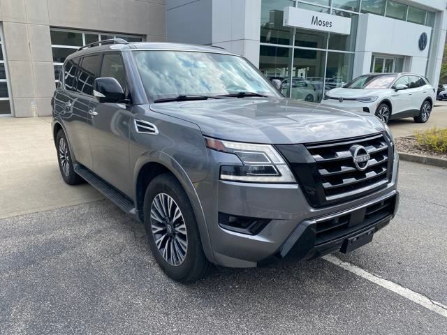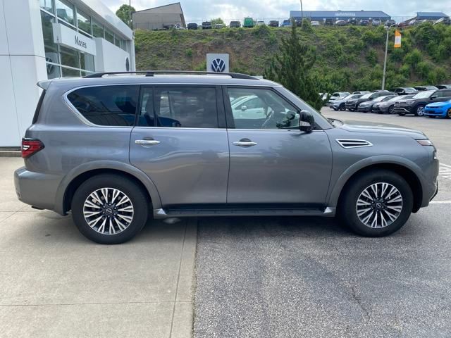 Clean CARFAX.Armada SL, 4D Sport Utility, 5.6L V8 DOHC 32V LEV3-ULEV125 400hp, 7-Speed Automatic, 4WD, Adaptive Cruise Control, Apple Car Play Android Auto, Automatic Emergency Braking, Backup Camera, Blind Spot Monitoring, Bluetooth, Heated Seats, Leather Seats, Navigation System, Parking Sensors, Rear Cross Traffic Alert, Remote Start, Sunroof/Moonroof, Third Row Seats, Running Boards.Priced below KBB Fair Purchase Price!Moses Auto Group utilizes "MARKET VALUE PRICING" on all the vehicles in our inventory. We use real-time market data to ensure that all our customers enjoy a hassle-free buying experience and the best value possible. That, along with the largest selection of over 3500 quality cars, trucks, and SUVs in the tristate WV, KY, and OH area (as well as the surrounding cities of Charleston, Huntington, and Morgantown), has our loyal client base coming back again and again. Come to Moses today and experience the car-buying process as it should be- Driven By You.