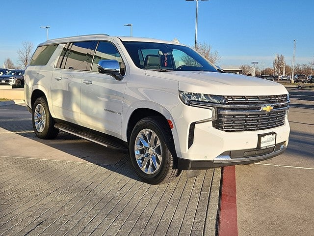 This Chevrolet Suburban is well equipped and includes, 10 Speakers, 12-Way Power Driver & Passenger Seat Adjusters, 15 Diagonal Multi-Color Head-Up Display, 1st & 2nd Row Color-Keyed Carpeted Floor Mats, 2 USB Data Ports, 2-Speed Active Electronic AutoTrac Transfer Case, 20 x 9 Polished Aluminum Wheels, 3rd Row 60/40 Power-Folding Split-Bench, 3rd row seats: split-bench, Adaptive Cruise Control, Advanced Trailering Package, Advanced Trailering System, Air Conditioning, Alloy wheels, AM/FM radio: SiriusXM with 360L, Apple CarPlay/Android Auto, Auto High-beam Headlights, Auto-dimming door mirrors, Auto-Dimming Inside Rear-View Mirror, Automatic Heated Steering Wheel, Automatic temperature control, Bose 10-Speaker Surround w/CenterPoint, Brake assist, Bright Front & Rear Door Sill Plates, Bumpers: body-color, Chrome Door Handles w/Body-Color Strip, Chrome Mirror Caps, Color-Keyed Carpeting Floor Covering, Delay-off headlights, Driver & Front Outboard Passenger Airbags, Driver door bin, Driver vanity mirror, Dual Exhaust System, Dual-Pane Power Panoramic Sunroof, Electronic Stability Control, Enhanced Automatic Emergency Braking, Enhanced Display & Alert Package, Enhanced Driver Information Center, Extra Capacity Cooling System, Floor Console w/Storage Area, Front & Rear Park Assist, Front Bucket Seats, Front Center Armrest, Front dual zone A/C, Fully automatic headlights, Hands-Free Rear Power Programmable Liftgate, HD Radio, HD Surround Vision, Heated & Ventilated Driver & Front Passenger Seats, Heated 2nd Row Outboard Seats, Heated door mirrors, Heated Driver & Front Passenger Seats, Heated front seats, Heated rear seats, Hill Descent Control, Hitch Guidance w/Hitch View, Infotainment Display, Inside Rearview Auto-Dimming Rear Camera Mirror, Integrated Trailer Brake Controller, Lane Change Alert w/Side Blind Zone Alert, Lane Keep Assist w/Lane Departure Warning, Leather-Wrapped Steering Wheel, LED Daytime Running Lamps, License Plate Front Mounting Package, Max Trailering Package, Memory seat, Memory Settings, Navigation System, Outside Heated Power-Adjustable Mirrors, Panic alarm, Passenger door bin, Perforated Leather Seating Surfaces, Power door mirrors, Power driver seat, Power Liftgate, Power passenger seat, Power Release 2nd Row Bucket Seats, Power steering, Power Tilt & Telescopic Steering Column, Power windows, Preferred Equipment Group 1LZ, Premium audio system: Chevrolet Infotainment 3 Premium, Premium Package, Radio: Chevrolet Infotainment 3 Premium System, Rain sensing wipers, Rear air conditioning, Rear Camera Mirror Washer, Rear Cross Traffic Alert, Rear Pedestrian Alert, Rear window defroster, Rear window wiper, Remote keyless entry, Remote Start, Roof rack: rails only, Safety Alert Seat, Security system, SiriusXM Radio w/360L, Speed control, Split folding rear seat, Spoiler, Steering wheel memory, Steering wheel mounted audio controls, Trailer Side Blind Zone Alert, Turn signal indicator mirrors, Universal Home Remote, Variably intermittent wipers, Ventilated front seats. 2021 Summit White Chevrolet Suburban 4D Sport Utility Premier 4WD EcoTec3 5.3L V8