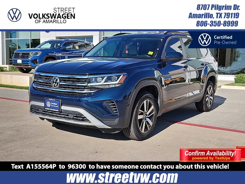 This Volkswagen Atlas is well equipped and includes Collision Avoidance System Collision Warning System Leather Seats Heated Seats Blind Spot Monitoring Touchscreen Controls Backup Camera Keyless Access with Push Button Start Remote Start Automatic Headlights Apple CarPlay Android Auto Bluetooth Hands-Free Power Package Multi Zone Climate Control Third Row Seating 3rd row seats: split-bench 6 Speakers Air Conditioning Alloy wheels AM/FM radio: SiriusXM Auto-dimming Rear-View mirror Automatic temperature control Brake assist Bumpers: body-color Delay-off headlights Electronic Stability Control Exterior Parking Camera Rear Forward collision: FCW w/Autonomous Emergency Braking mitigation Four wheel independent suspension Front Bucket Seats Front Center Armrest Front dual zone A/C Front fog lights Fully automatic headlights Heated door mirrors Heated front seats Passenger door bin Perforated V-Tex Leatherette Seating Surfaces Power door mirrors Power driver seat Power Liftgate Power steering Power windows Radio data system Radio: Composition Media w/8"Touchscreen Rain sensing wipers Rear air conditioning Rear window defroster Rear window wiper Remote CD player Remote keyless entry Roof rack: rails only Speed-sensing steering Split folding rear seat Spoiler Standard Suspension Steering wheel mounted audio controls Traction control Turn signal indicator mirrors Variably intermittent wipers Wheels: 18"5-Spoke 2-Tone Machined Alloy. 2021 Tourmaline Blue Metallic Volkswagen Atlas 4D Sport Utility 2.0T SE FWD 2.0L TSIClean CARFAX.