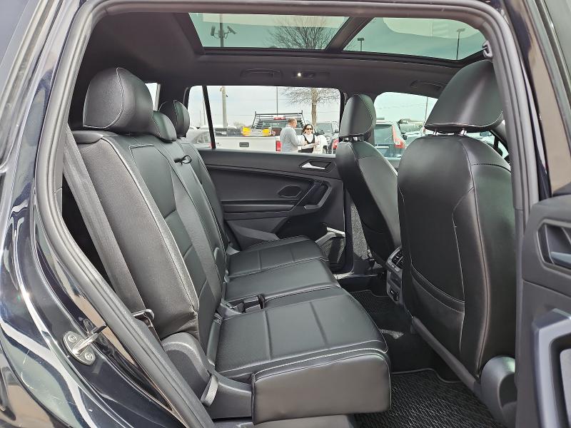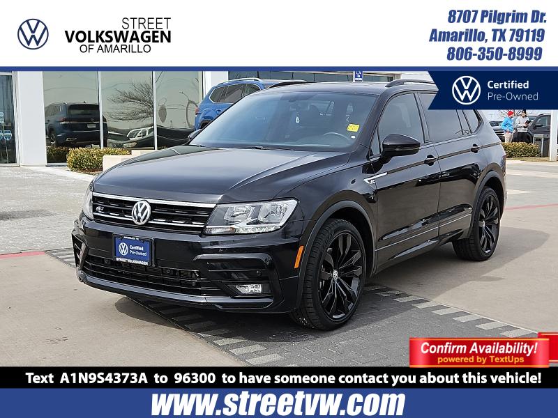 This Volkswagen Tiguan is well equipped and includes Collision Avoidance System Collision Warning System Active Parking Assist Adaptive Cruise Control Leather Seats Heated Seats Blind Spot Monitoring Touchscreen Controls Backup Camera Keyless Access with Push Button Start Automatic Headlights Apple CarPlay Android Auto Bluetooth Hands-Free Power Package Multi Zone Climate Control Third Row Seating 3-Row Rubber Monster Mats w/Logo Kit (Set of 5) 3rd row seats: bench 6 Speakers Air Conditioning Alloy wheels AM/FM radio: SiriusXM with 360L Automatic temperature control Brake assist Bumpers: body-color Delay-off headlights Electronic Stability Control Exterior Parking Camera Rear Forward collision: FCW w/Autonomous Emergency Braking mitigation Front Bucket Seats Front Center Armrest Front dual zone A/C Front fog lights Fully automatic headlights Heated door mirrors Heated Front Comfort Seats Heated front seats Heavy Duty Trunk Liner w/VW CarGo Blocks Panic alarm Passenger door bin Perforated V-Tex Leatherette Seating Surfaces Power door mirrors Power driver seat Power moonroof Power steering Power windows Radio data system Radio: MIB3 Composition Media AM/FM/HD Rear window defroster Rear window wiper Remote keyless entry Roof rack: rails only Security system Split folding rear seat Spoiler Steering wheel mounted audio controls Turn signal indicator mirrors Variably intermittent wipers VW Care Wheels: 20"Machined Black Alloy. 2021 Deep Black Pearl Volkswagen Tiguan 4D Sport Utility 2.0T SE R-Line Black FWD 2.0L TSI DOHCCARFAX One-Owner. Odometer is 2595 miles below market average! 23/29 City/Highway MPG