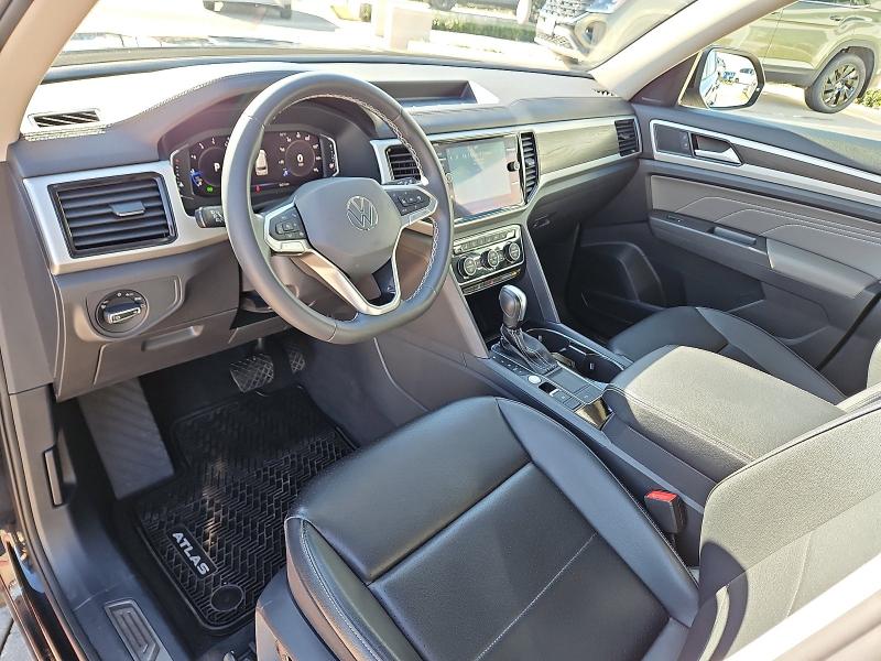 This Volkswagen Atlas is well equipped and includes, Collision Avoidance System, Collision Warning System, Active Parking Assist, Leather Seats, Heated Seats, Blind Spot Monitoring, Touchscreen Controls, Backup Camera, Keyless Access with Push Button Start, Remote Start, Automatic Headlights, Apple CarPlay, Android Auto, Bluetooth Hands-Free, Sunroof/Moonroof, Power Package, Multi Zone Climate Control, Third Row Seating, 2nd-Row Dual Captain's Chairs, 3rd row seats: split-bench, 6 Speakers, Air Conditioning, Alloy wheels, AM/FM radio: SiriusXM with 360L, Auto-Dimming Rear-View Mirror, Auto-dimming Rear-View mirror, Automatic temperature control, Brake assist, Bumpers: body-color, Delay-off headlights, Electronic Stability Control, Exterior Parking Camera Rear, Front Bucket Seats, Front Center Armrest, Front dual zone A/C, Front fog lights, Fully automatic headlights, Heated door mirrors, Heated front seats, Panoramic Sunroof Package, Passenger door bin, Perforated V-Tex Leatherette Seating Surfaces, Power door mirrors, Power driver seat, Power Liftgate, Power steering, Power Tilting & Sliding Panoramic Sunroof, Power windows, Radio data system, Radio: MIB3 Composition Media w/8 Touchscreen, Rain sensing wipers, Rear air conditioning, Rear window defroster, Rear window wiper, Remote keyless entry, Roof rack: rails only, Split folding rear seat, Spoiler, Steering wheel mounted audio controls, Turn signal indicator mirrors, Volkswagen Logo Puddle Lights. 2022 Deep Black Volkswagen Atlas 4D Sport Utility 2.0T SE w/Technology FWD 2.0L TSICARFAX One-Owner. Clean CARFAX. Odometer is 18890 miles below market average!