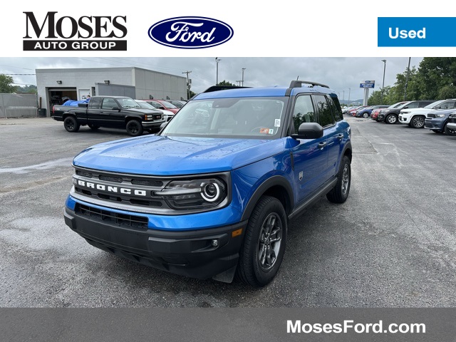 25/28 City/Highway MPGCARFAX One-Owner.Moses Auto Group utilizes "MARKET VALUE PRICING" on all the vehicles in our inventory. We use real-time market data to ensure that all our customers enjoy a hassle-free buying experience and the best value possible. That, along with the largest selection of over 3500 quality cars, trucks, and SUVs in the tristate WV, KY, and OH area (as well as the surrounding cities of Charleston, Huntington, and Morgantown), has our loyal client base coming back again and again. Come to Moses today and experience the car-buying process as it should be- Driven By You.2022 Ford Bronco Sport Big BendThis 2022 Ford Bronco Sport is well equipped with the following equipment...Convenience Package (Front Driver & Passenger Seatback Zipper Pockets, Heated Front Bucket Seats, Intelligent Access (Lock/Unlock), Leather-Wrapped Steering Wheel, LED Fog Lamps, Rear Parking Sensors, Universal Garage Door Opener (UGDO), and Wireless Charging Pad), Equipment Group 200A, 3.80 Axle Ratio, 4-Wheel Disc Brakes, 4G LTE Wi-Fi Hotspot Credit, 6 Speakers, ABS brakes, Air Conditioning, Alloy wheels, AM/FM radio: SiriusXM, AM/FM Stereo, Auto High-beam Headlights, Automatic temperature control, Brake assist, Compass, Delay-off headlights, Driver door bin, Driver vanity mirror, Dual front impact airbags, Dual front side impact airbags, Electronic Stability Control, Emergency communication system: SYNC 3 911 Assist, Four wheel independent suspension, Front & Rear Floor Liners, Front anti-roll bar, Front Bucket Seats, Front Center Armrest, Front reading lights, Fully automatic headlights, Heated door mirrors, Illuminated entry, Knee airbag, Low tire pressure warning, Occupant sensing airbag, Outside temperature display, Overhead airbag, Overhead console, Panic alarm, Passenger door bin, Passenger vanity mirror, Power door mirrors, Power steering, Power windows, Radio data system, Rear anti-roll bar, Rear reading lights, Rear seat center armrest, Rear window defroster, Rear window wiper, Remote keyless entry, Roof rack: rails only, Rubberized Second Row Seat Backs, Security system, SiriusXM Radio, Speed control, Speed-sensing steering, Speed-Sensitive Wipers, Split folding rear seat, Steering wheel mounted audio controls, SYNC 3 Communications & Entertainment System, SYNC 3/Apple CarPlay/Android Auto, Tachometer, Telescoping steering wheel, Tilt steering wheel, Traction control, Trip computer, Unique Cloth Front Bucket Seats, Variably intermittent wipers, and Wheels: 17" Carbonized Gray-Painted Aluminum Want your customer experience to be as unrivaled as your next BMW? Discover the Difference at Moses BMW where friendly, professional associates simplify your buying experience and provide real value. See our Google and [link] reviews to hear why even out-of-state customers say they will drive over 500 miles again to experience our friendly and fast service. Call [phone] today to set your VIP appointment with one of our experienced managers to help you find your perfect match today.