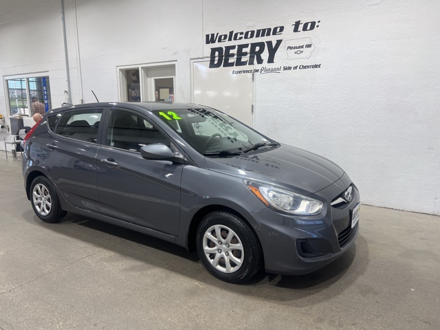 Priced below KBB Fair Purchase Price! * LOCAL TRADE *, * POWER WINDOWS *, * POWER DOOR LOCKS *, * CRUISE CONTROL *, * PRIOR SALVAGE TITLE *, You Want More... You Get More !!, * VISIT [link] *, 6-Way Adjustable Driver Seat w/Height Adjustment, 60/40 Split Fold-Down Rear Seatback, ABS w/Electronic Brake Force Distribution (EBD), Active Front Head Restraints, Adjustable Head Restraints, Advanced Dual Front Airbags, Air Conditioning, AM/FM/XM/CD/MP3 Audio System w/6 Speakers, Body-Color Mirrors, Bodycolor Door Handles, Cloth Door Inserts, Driver's Seat Armrest, Dual Vanity Mirrors, Electronic Stability Control, Front 2-Speed Intermittent Wiper, Front Door Map Pockets, Front Seatbelt Pretensioner, Map Dome & Cargo Lights, Motor Driven Power Steering (MDPS), Option Group 1, Passenger Front Seatback Pocket, Power Door Locks, Power Mirrors, Power Windows, Rear Defroster w/Timer, Rear Wiper, Remote Keyless Entry w/Panic Alert, Sunglasses Holder, Tachometer, Tilt Steering Wheel, Tinted Glass w/Windshield Shade Band, Tire Pressure Monitoring System, Traction Control System, Trip Computer, Vehicle Stability Management.CARFAX One-Owner. Cyclone Gray 2012 Hyundai Accent GS 4D Hatchback 1.6L I4 DGI DOHC 16V 28/37 City/Highway MPG FWD 6-Speed Automatic with OverdrivePleasant People, Pleasant Pricing, only in Pleasant Hill!!! Serving the Des Moines Area for 3 Generations as one of MIDWEST'S LARGEST DEALER GROUPS including Cedar Falls, Cedar Rapids, Dubuque, Iowa City, Des Moines, West Des Moines, Davenport, Clinton, Urbandale, Grimes, Marion, Marshalltown, Mason City, Fort Dodge, Ankeny, Waterloo, Ames, Burlington, Quad Cities, Waukee, Pleasant Hill, Johnston & Muscatine.EXPERIENCE THE PLEASANT SIDE OF CHEVROLET!!