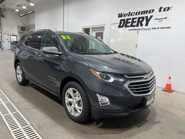 Priced below KBB Fair Purchase Price! * ONE OWNER LOCAL TRADE *, * AWD *, * LEATHER *, * HEATED/COOLED SEATS *, * NAVIGATION *, * PANORAMIC SUNROOF/MOONROOF *, * BACK-UP CAMERA *, * BLINDSPOT MONITOR *, * REMOTE START *, * APPLE CARPLAY *, * ANDROID AUTO *, * HEATED STEERING WHEEL *, * 2ND ROW BENCH SEAT *, * HEATED REAR SEATS *, * MEMORY SEATS *, * BLUETOOTH AUDIO/PHONE *, * POWER LIFT GATE *, * LANE DEPARTURE ALERT/ASSIST *, * POWER WINDOWS *, * POWER DOOR LOCKS *, * ADAPTIVE CRUISE CONTROL *, You Want More... You Get More !!, * VISIT [link] *, 8-Way Power Front Passenger Seat Adjuster, Adaptive Cruise Control, Confidence & Convenience II Package, Driver Confidence III Package, Driver Convenience II Package, HD Surround Vision, Heated Rear Seats, Heated Steering Wheel, Power Sunroof, Preferred Equipment Group 1LZ, Safety Alert Seat, Ventilated Driver Seat, Ventilated Front Passenger Seat.Gray 2021 Chevrolet Equinox Premier 4D Sport Utility 1.5L DOHC 25/30 City/Highway MPG AWD 6-Speed Automatic Electronic with OverdriveCertification Program Details: Deery Certified Pre-Owned Details: * $0 Deductible * * 3 Months or 3,000 Miles (whichever comes first) * * Systems Covered * Gasoline/Diesel Engine, Transmission, Drive Axle, Hybrid Components, Filters, Fluids, Lubricants & Taxes and Seals and Gaskets * * See Dealer for More Information *Awards: * 2021 IIHS Top Safety Pick with specific headlightsPleasant People, Pleasant Pricing, only in Pleasant Hill!!! Serving the Des Moines Area for 3 Generations as one of MIDWEST'S LARGEST DEALER GROUPS including Cedar Falls, Cedar Rapids, Dubuque, Iowa City, Des Moines, West Des Moines, Davenport, Clinton, Urbandale, Grimes, Marion, Marshalltown, Mason City, Fort Dodge, Ankeny, Waterloo, Ames, Burlington, Quad Cities, Waukee, Pleasant Hill, Johnston & Muscatine.EXPERIENCE THE PLEASANT SIDE OF CHEVROLET!!
