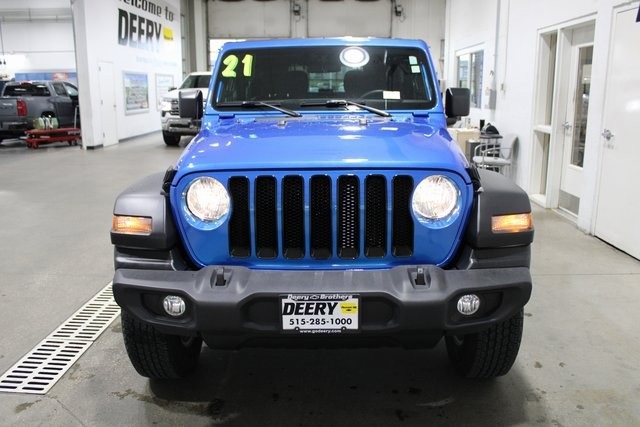 Priced below KBB Fair Purchase Price! * ONE OWNER LOCAL TRADE *, * 4WD *, * NAVIGATION *, * BLUETOOTH AUDIO/PHONE *, * REAR PARK ASSIST *, * SIRIUS/XM RADIO *, * CLEAN CAR FAX *, * CLEAN AUTOCHECK *, * POWER WINDOWS *, * POWER DOOR LOCKS *, * CRUISE CONTROL *, You Want More... You Get More !!, * VISIT [link] *, ., 3.45 Rear Axle Ratio, 7.0" Touchscreen Display, Air Conditioning, Air Conditioning w/Auto Temperature Control, Air Filtering, Apple CarPlay, Automatic Headlamps, Blind Spot & Cross Path Detection, Cluster 7.0" TFT Color Display, Deep Tint Sunscreen Windows, For More Info Call [phone], Front 1-Touch Down Power Windows, Google Android Auto, GPS Antenna Input, Injection Molded Black Rear Bumper, Integrated Center Stack Radio, Leather Wrapped Steering Wheel, LED Taillamps, ParkSense Rear Park Assist System, Power Heated Mirrors, Power steering, Quick Order Package 25S Sport S, R1234YF A/C Refrigerant, Radio: Uconnect 4 w/7" Display, Remote Keyless Entry, Safety Group, Security Alarm, SiriusXM Radio Service, SiriusXM Satellite Radio, Speed Sensitive Power Locks, Sport S, Steering wheel mounted audio controls, Sun Visors w/Illuminated Vanity Mirrors, Technology Group, USB Host Flip, Wheels: 17" x 7.5" Tech Silver Aluminum.Odometer is 6972 miles below market average! CARFAX One-Owner. Clean CARFAX. Hydro Blue Pearl Coat 2021 Jeep Wrangler Sport S 2D Sport Utility 3.6L V6 24V VVT 20/24 City/Highway MPG 4WD 8-Speed AutomaticPleasant People, Pleasant Pricing, only in Pleasant Hill!!! Serving the Des Moines Area for 3 Generations as one of MIDWEST'S LARGEST DEALER GROUPS including Cedar Falls, Cedar Rapids, Dubuque, Iowa City, Des Moines, West Des Moines, Davenport, Clinton, Urbandale, Grimes, Marion, Marshalltown, Mason City, Fort Dodge, Ankeny, Waterloo, Ames, Burlington, Quad Cities, Waukee, Pleasant Hill, Johnston & Muscatine.EXPERIENCE THE PLEASANT SIDE OF CHEVROLET!!