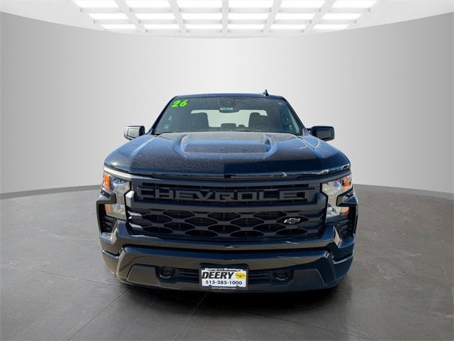 Factory MSRP: $49,170 $10,409 off MSRP! Black 2026 Chevrolet Custom Convenience Package (Electric Rear-Window Defogger, EZ Lift Power Lock and Release Tailgate, LED Cargo Area Lighting, Remote Vehicle Starter System, and Theft Deterrent System (unauthorized Entry)), Custom Value Package, Dark Essentials Package (Black Name Plates, Black Tailgate CHEVROLET Lettering, and Front Black Bowtie Emblem), High Capacity Suspension Package, Preferred Equipment Group 1CX (10-Way Power Driver Seat with Lumbar, 120-Volt Bed Mounted Power Outlet, 120-Volt Interior Power Outlet, 3.5 Monochromatic Display Driver Info Center, 40/20/40 Front Split-Bench Seat, Bluetooth For Phone, Cloth Seat Trim, Color-Keyed Carpeting Floor Covering, Deep-Tinted Glass, Dual Rear USB Ports (charge Only), Electronic Cruise Control, Front Frame-Mounted Black Recovery Hooks, Front Rubberized Vinyl Floor Mats, HD Rear Vision Camera, Manual Tilt Wheel Steering Column, OnStar Services Capable, Power Front Windows with Driver Express Up/Down, Power Front Windows with Passenger Express Down, Power Rear Windows with Express Down, Rear 60/40 Folding Bench Seat (folds Up), Rear Rubberized-Vinyl Floor Mats, Remote Keyless Entry, SiriusXM Trial Subscription, Standard Tailgate, Teen Driver, Tire Pressure Monitoring System, and Wi-Fi Hot Spot Capable), Trailering Package (Hitch Guidance), 3.42 Rear Axle Ratio, 4-Wheel Disc Brakes, 6 Speakers, 6-Speaker Audio System, ABS brakes, Air Conditioning, All-Weather Floor Liner, Alloy wheels, AM/FM radio: SiriusXM, Apple CarPlay/Android Auto, Auto High-beam Headlights, Automatic Emergency Braking, Brake assist, Bumpers: body-color, Chevytec Spray-on Black Bedliner, Compass, Delay-off headlights, Driver door bin, Driver vanity mirror, Dual front impact airbags, Dual front side impact airbags, Electronic Stability Control, Emergency communication system: OnStar, Following Distance Indicator, Forward Collision Alert, Front anti-roll bar, Front Center Armrest w/Storage, Front License Plate Kit, Front Pedestrian Braking, Front reading lights, Front wheel independent suspension, Fully automatic headlights, Heated door mirrors, Illuminated entry, IntelliBeam Automatic High Beam on/Off, Lane Keep Assist with Lane Departure Warning, Low tire pressure warning, Occupant sensing airbag, Outside temperature display, Overhead airbag, Overhead console, Panic alarm, Passenger door bin, Passenger vanity mirror, Power door mirrors, Power driver seat, Power steering, Power windows, Premium audio system: Chevrolet Infotainment 3, Radio data system, Radio: Chevrolet Infotainment 3 System, Rear reading lights, Rear step bumper, Rear Wheelhouse Liners, Rear window defroster, Remote keyless entry, Security system, Speed control, Speed-sensing steering, Split folding rear seat, Tachometer, Tilt steering wheel, Traction control, Trip computer, Variably intermittent wipers, Voltmeter, Wheels: 20 x 9 Bright Silver Painted Aluminum, and Wheels: 20 x 9 High Gloss Black Painted Aluminum. Silverado 1500 4D Extended Cab Custom 2.7L I4 Turbocharged DOHC 16V LEV3-SULEV30 310hp 17/21 City/Highway MPG 8-Speed Automatic 4WD Price includes: $1000 - Bonus Cash. Exp. 03/02/2026 $3000 - Customer Cash. Exp. 03/02/2026 $1,000 - Exp. 09/30/2026$1,000 DEERY TRADE ASSIST FOR QUAILIFIED TRADES INS. CALL STORE FOR DETAILS