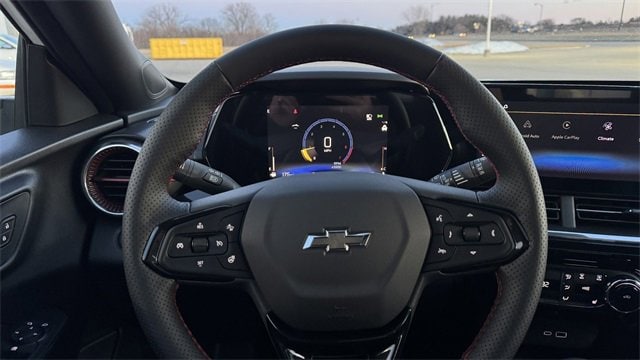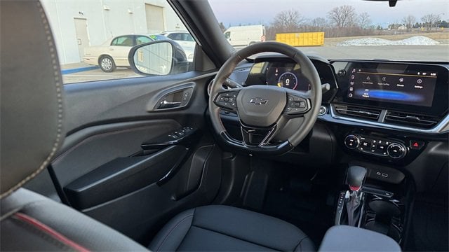Factory MSRP: $28,650 Summit White 2026 Chevrolet Driver Confidence Package (Adaptive Cruise Control, Rear Cross Traffic Alert, and Rear Park Assist), Sunroof Package (Wireless Charging), 2-Way Adjustable Front Head Restraints, 2-Way Power Driver Lumbar Seat Adjuster, 3.50 Final Drive Axle Ratio, 4-Way Manual Front Passenger Seat Adjuster, 4-Wheel Disc Brakes, 6 Speakers, 6-Speaker Audio System Feature, 8-Way Power Driver Seat Adjuster, ABS brakes, Air Conditioning, Alloy wheels, AM/FM radio: SiriusXM, Auto High-beam Headlights, Automatic temperature control, Brake assist, Bumpers: body-color, Compass, Delay-off headlights, Driver door bin, Driver vanity mirror, Dual front impact airbags, Dual front side impact airbags, Electronic Stability Control, Emergency communication system: OnStar One Essentials, Evotex Seat Trim, Exterior Parking Camera Rear, Front anti-roll bar, Front Bucket Seats, Front Center Armrest, Front reading lights, Front wheel independent suspension, Fully automatic headlights, Heated door mirrors, Heated front seats, Heated steering wheel, Illuminated entry, Leather steering wheel, Low tire pressure warning, Occupant sensing airbag, Outside temperature display, Overhead airbag, Overhead console, Panic alarm, Passenger door bin, Passenger vanity mirror, Power door mirrors, Power driver seat, Power steering, Power windows, Premium audio system: Chevrolet Infotainment 3, Radio data system, Radio: AM/FM Stereo Audio System, Rear window defroster, Rear window wiper, Remote keyless entry, Security system, SiriusXM Trial Subscription, Speed control, Split folding rear seat, Spoiler, Sport steering wheel, Steering wheel mounted audio controls, Tachometer, Telescoping steering wheel, Tilt steering wheel, Traction control, Trip computer, Variably intermittent wipers, Wheels: 19 Black-Painted Machined Aluminum, and Wireless Apple CarPlay/Wireless Android Auto. Trax 4D Sport Utility 2RS ECOTEC 1.2L Turbo 28/32 City/Highway MPG 6-Speed Automatic FWD