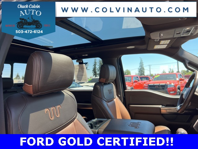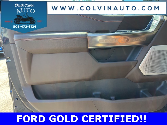 Clean CARFAX. Certified. King Ranch 5.0L V8 KING RANCH CHROME PACKAGE, MOONROOF, SUNROOF, ADAPTIVE CRUISE, B&OSOUND, HEATED REAR SEATS, POWER TAILGATE, POWER SLIDING REAR WINDOW, 4WD. Ford Gold Certified Details: * Powertrain Limited Warranty: 84 Month/100,000 Mile (whichever comes first) from original in-service date * Vehicle History * Limited Warranty: 12 Month/12,000 Mile (whichever comes first) after new car warranty expires or from certified purchase date * 172 Point Inspection * Roadside Assistance * Transferable Warranty * Warranty Deductible: $100 * and 22,000 FordPass Rewards Points to use toward first two maintenance visitsOdometer is 8606 miles below market average!Ford Certified Pre-Owned Vehicle! 7 year / 100,000 Mile Power Train Warranty, Clean Car-Fax History Report, 24 hour Roadside Assistance all included at no additional charge. Buy with Peace of Mind knowing this vehicle has passed a certified inspection by a Factory Trained and Certified Ford Technician. Our Ford Certified Pre-Owned vehicles are some of the best values you will find anywhere! Our sale prices on Ford Certified Pre-owned are after all factory rebates. Some rebates may require financing through Ford Credit. (Financing on credit approval)