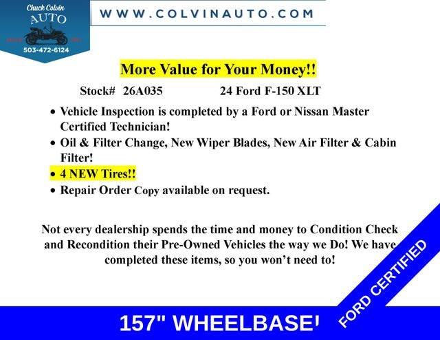 Recent Arrival! Clean CARFAX. Certified. XLT 5.0L V8 LONGBOX!!, 157 WHEELBASE!, 5.0L V8!!, 4 NEW TIRES!!, 4WD, Electronic Locking w/3.73 Axle Ratio, Integrated Trailer Brake Controller, Tow/Haul Package. Odometer is 4868 miles below market average!Ford Gold Certified Details: * Roadside Assistance * Transferable Warranty * Powertrain Limited Warranty: 84 Month/100,000 Mile (whichever comes first) from original in-service date * and 22,000 FordPass Rewards Points to use toward first two maintenance visits * Warranty Deductible: $100 * Limited Warranty: 12 Month/12,000 Mile (whichever comes first) after new car warranty expires or from certified purchase date * Vehicle History * 172 Point InspectionFamily owned and operated since 1911. We have developed a loyal dedicated following based on our unique approach to business. All the information you need, up front, with no hassles! Every effort is made by dealer to ensure accurate pricing, however mistakes can occur by human error or data feed error. Please verify all pricing with dealer prior to purchase as dealership not required to honor any price posted in error by human error or typo or by data feed error from one of our many digital partners. Family owned and operated since 1911. We have developed a loyal dedicated following based on our unique approach to business. All the information you need, up front, with no hassles! Every effort is made by dealer to ensure accurate pricing, however mistakes can occur by human error or data feed error. Please verify all pricing with dealer prior to purchase as dealership not required to honor any price posted in error by human error or typo or by data feed error from one of our many digital partners. * Pricing - All vehicle pricing shown is assumed to be correct and accurate. Incentives, credit restrictions, qualifying programs, residency, and fees may raise, lower, or otherwise augment monthly payments. Additionally, incentives offered by the manufacturer are subject to change and may fluctuate or differ based on region and other considerations. Unless otherwise noted or specified, pricing shown does not include title, registration, or tax fees and costs.