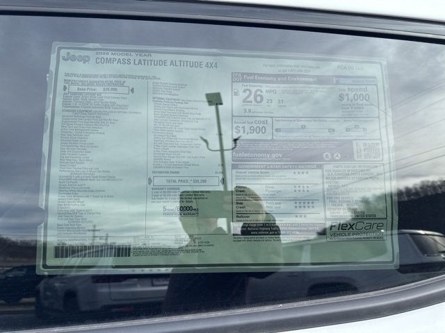 Bright White Clearcoat 2026 Jeep Compass Latitude 4WD 8-Speed Automatic 2.0L I4 DOHC 4WD.Tim Short Chrysler Dodge Jeep Ram of Hazard KY is very proud to offer this wonderful 2026 Jeep Compass in Bright White Clearcoat This vehicle has passed our comprehensive inspection and comes with the following features; Recent Arrival! 23/31 City/Highway MPGPlease feel free to explore our entire site and see all of our vehicles, learn about our many services, research our cars & trucks, and search our new Chrysler, Dodge, Jeep, RAM incentives. If you have any questions, drop us a line, give us a call, or drop by 270 Fitz Gilbert Rd Hazard, Kentucky. We hope to have the pleasure of meeting you soon. Take the SHORT drive to Satisfaction!!! Please visit us online at www.timshortchrysler.net or call us at [phone]!! Price includes: $1000 - 2026 National Retail Bonus Cash . Exp. 02/02/2026 $1500 - 2026 National Stellantis Loyalty Retail Bonus Cash . Exp. 02/02/2026