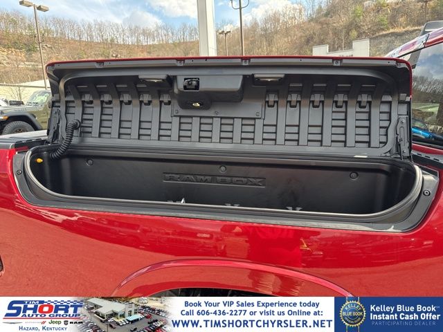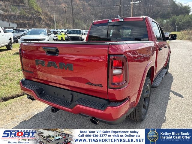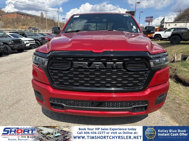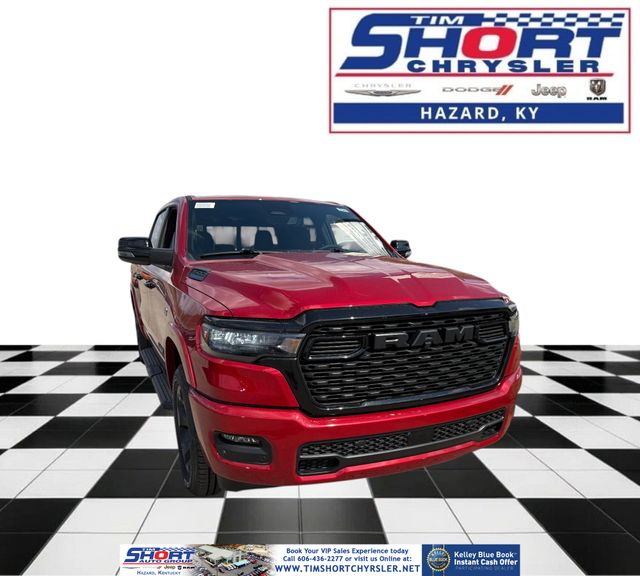 Molten Red Pearlcoat 2026 Ram 1500 Big Horn/Lone Star 4WD 8-Speed Automatic HEMI 5.7L V8 Multi Displacement VVT eTorque 115V Auxiliary Power Outlet, 115V Auxiliary Rear Power Outlet, 12" Touchscreen Display, 2nd Row in Floor Storage Bins, 3 Rear Seat Head Restraints, 4 Way Front Headrests, 400W Inverter, 4G LTE Wi-Fi Hot Spot, 9 Amplified Speakers with Subwoofer, Accent Color Door Handles, Accent Color Premium Power Mirrors, Accent Color Tailgate Handle, Air Conditioning ATC with Dual Zone Control, Anti-Spin Differential Rear Axle, Apple CarPlay, Auto Power-Folding Mirrors, Auto-Dimming Exterior Driver Mirror, Auto-Dimming Rear-View Mirror, Bed Utility Group, Big Horn Level 2 Equipment Group, Black Exterior Mirrors, Black Exterior Truck Badging, Black Headlamp Bezels, Black Interior Accents, Black Painted Exterior Mirrors Caps, Black Premium Power Mirrors, Black Tail Lamp Bezels, Body Color Fender Flares, Body Color Front Bumper, Body Color Rear Bumper with Step Pads, Bucket Seats, Center Console Parts Module, Cluster 7.0" TFT Color Display, Configurable Drive Mode, Connected Travel and Traffic Services, Connectivity - US/Canada, Convex Wide-Angle Exterior Mirror Insert, Deluxe Cloth Bucket Seats, Disassociated Touchscreen Display, Dual Exhaust with Black Tips, Exterior 115V AC Outlet, Exterior Mirrors Courtesy Lamps, Exterior Mirrors with Heating Element, Exterior Mirrors with Supplemental Signals, Front Seat Back Map Pockets, Full Length Floor Console, Global Telematics Box Module, Glove Box Lamp, Google Android Auto, GPS Antenna Input, GPS Navigation, Grille Black Surround Black Mesh, HD Radio, Heated Front Seats, Heated Steering Wheel, Integrated Center Stack Radio, Integrated Voice Command with Bluetooth, Leather Wrapped Steering Wheel, LED Dome Lamp with on/Off Switch, LED Footwell Lighting, Manual Adjust 4-Way Front Passenger Seat, Media Hub with 2 Charge Only USBs, MOPAR 4 Adjustable Cargo Tie-Down Hooks, MOPAR Spray in Bedliner, Night Edition, Overhead LED Lamps, Pick-Up Box Lighting, Power 2-Way Driver Lumbar Adjust, Power Adjust 8-Way Driver Seat, Power Adjustable Pedals, Premium Overhead Console, Quick Order Package 27Z Big Horn, Radio: Uconnect 5 Navigation with 12.0" Display, RAM Grille Badge - Black, Rear 60/40 Folding Seat, Rear Center Armrest, Rear Power Sliding Window, Rear Window Defroster, Remote Tailgate Release, Security Alarm, SiriusXM Radio Service, SiriusXM with 360L, Steering Wheel Mounted Audio Controls, Sun Visors with Illuminated Vanity Mirrors, Universal Garage Door Opener, USB Host Flip, Wheels: 20" x 9.0" Aluminum Painted Clad, Wheels: 20" x 9" Aluminum Chrome Clad.Tim Short Chrysler Dodge Jeep Ram of Hazard KY is excited to offer this fantastic-looking 2026 Ram 1500 in Molten Red Pearlcoat This vehicle has passed our comprehensive inspection and comes with the following features; Recent Arrival!Please feel free to explore our entire site and see all of our vehicles, learn about our many services, research our cars & trucks, and search our new Chrysler, Dodge, Jeep, RAM incentives. If you have any questions, drop us a line, give us a call, or drop by 270 Fitz Gilbert Rd Hazard, Kentucky. We hope to have the pleasure of meeting you soon. Take the SHORT drive to Satisfaction!!! Please visit us online at www.timshortchrysler.net or call us at [phone]!! Price includes: 6% Msrp - 2026 GLBC Cover State Sales Tax Standalone % Below MSRP . Exp. 03/31/2026 In An Effort To Offer The Absolute Lowest Prices To Our Customers. We Have Partnered With Our Lenders To Offer An Additional Optional Rebate. Customers Must Finance At Minimum, The Full Final Online Selling Price To Be Eligible For The Discount In Its Entirety. Any Cash Down Or Positive Equity, With Decrease The Discount. Please Contact Our Dealership For Any And All Questions. This Rebate Is NOT Compatible With Any Manufacture Provided Incentivized Interest Rates.