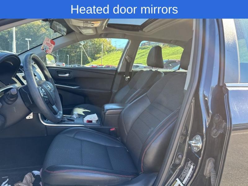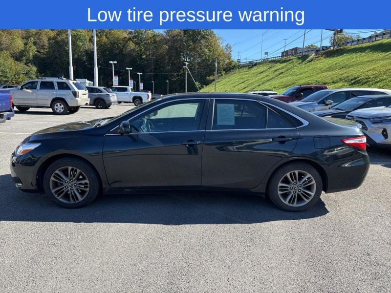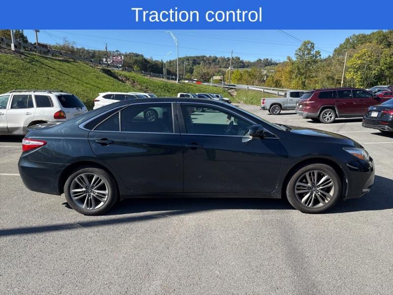 The 2017 Toyota Camry SE in Cosmic Gray Metallic embodies a balance of sophistication and sportiness. Its sleek, aerodynamic bodylines are accentuated by the deep gray metallic finish, giving the car a refined yet assertive presence. The SE trim enhances this look with an exclusive sport mesh front grille, body-colored sport side rocker panels, and a subtle rear spoiler that hint at its dynamic capability.The exterior is complemented by 17-inch machined-finish alloy wheels wrapped in performance all-season tires, adding both style and confident road grip. Smoked projector-beam halogen headlights and LED daytime running lights provide a sharp visual signature while improving visibility. The sculpted hood and pronounced shoulder lines flow smoothly toward the rear, where wraparound taillights and chrome-tipped exhaust outlets complete the modern, athletic profile.Performance and HandlingUnder the hood, the Camry SE is powered by a 2.5-liter four-cylinder engine delivering 178 horsepower and 170 lb-ft of torque, paired with a 6-speed automatic transmission featuring Sport Mode and paddle shifters for driver engagement. The sport-tuned suspension provides a firmer, more responsive ride than the base trims, offering precise steering and confident cornering without sacrificing comfort.Interior and ComfortInside, the SE trim blends comfort with subtle sport styling. Sport fabric SofTex-trimmed seats provide support and durability, while leather accents on the steering wheel and shift knob add a premium touch. The cabin is ergonomically designed with intuitive controls and soft-touch materials throughout. The multi-information display offers vehicle data at a glance, and dual-zone automatic climate control ensures all passengers ride comfortably.The Camry SE also includes Bluetooth connectivity, a 6.1-inch touchscreen infotainment system, six-speaker audio, USB/AUX inputs, and steering-wheel-mounted controls, combining convenience with functionality.Safety and ReliabilityAs expected from Toyota, safety is central to the Camry SE's design. The 2017 model features ten airbags, a backup camera, Vehicle Stability Control (VSC), Traction Control (TRAC), ABS with Electronic Brake-force Distribution (EBD), and Brake Assist (BA). It received top crash-test ratings from the NHTSA, reinforcing its reputation as one of the most dependable midsize sedans on the market.