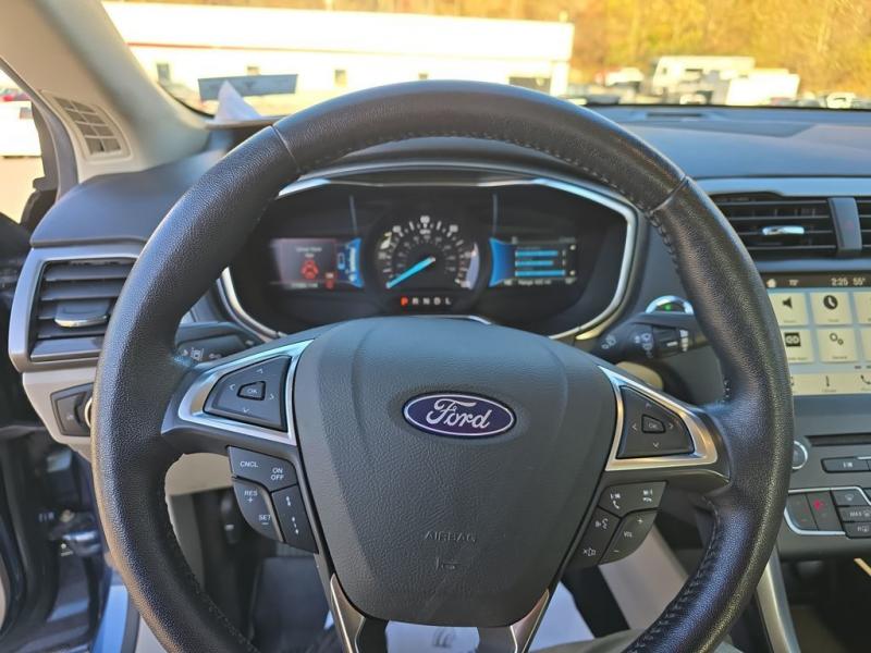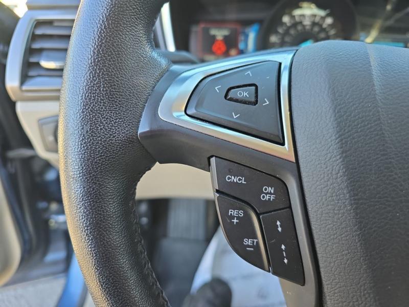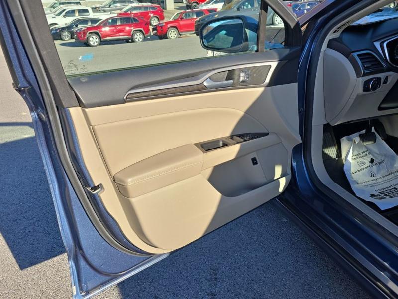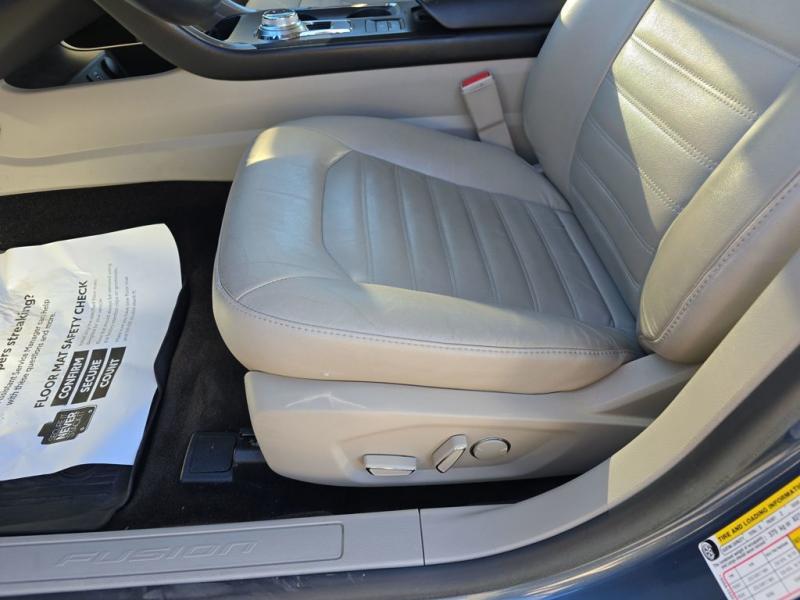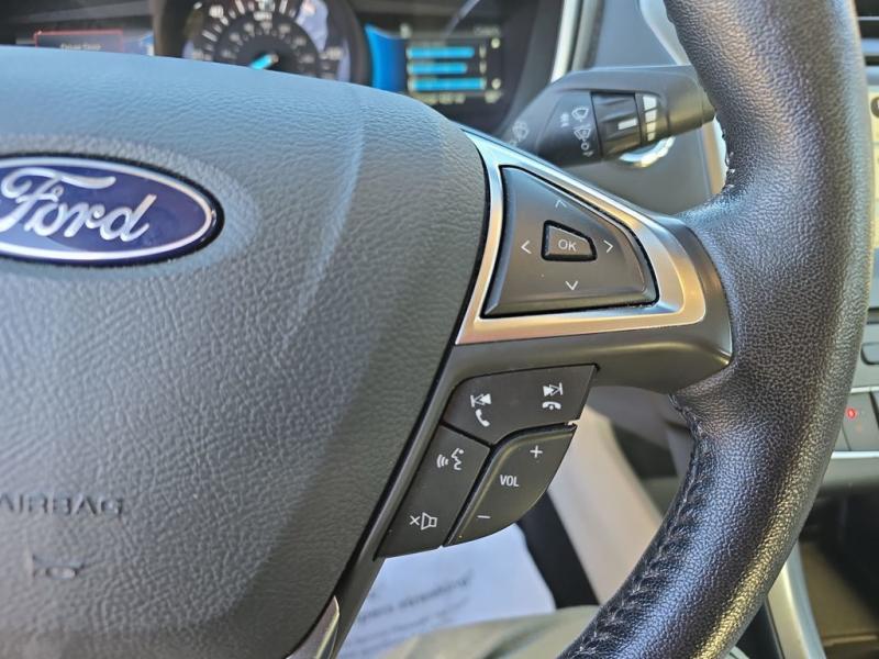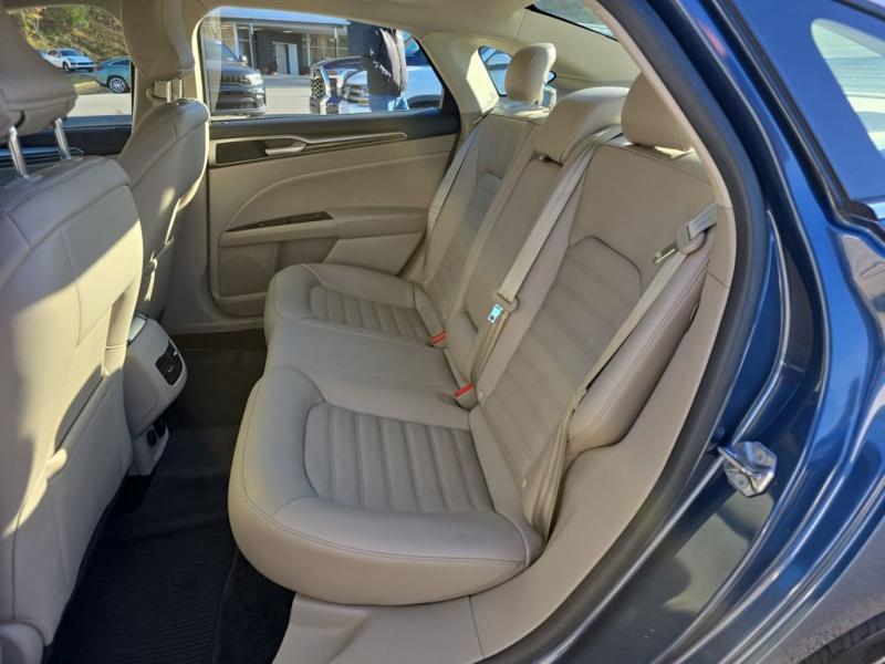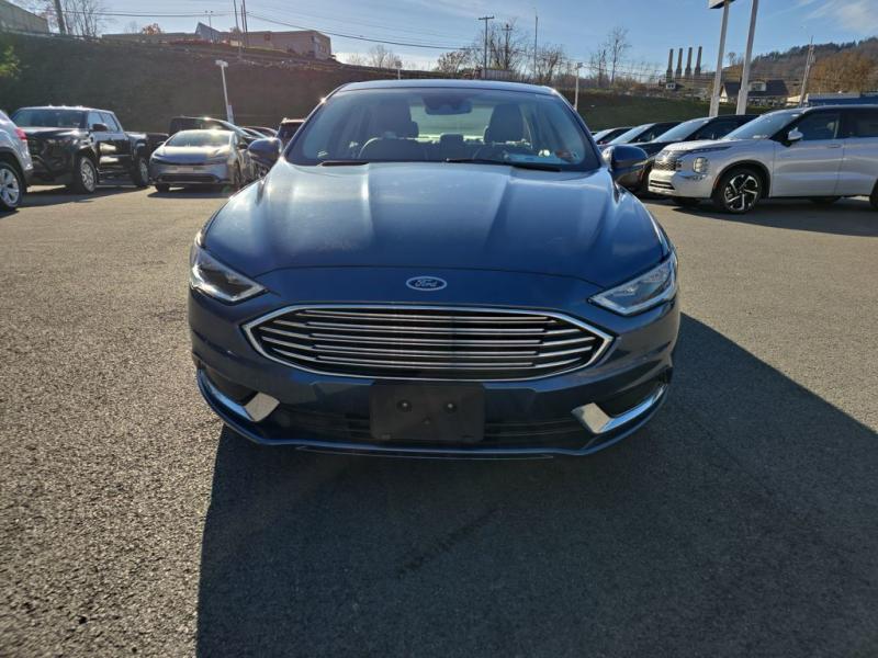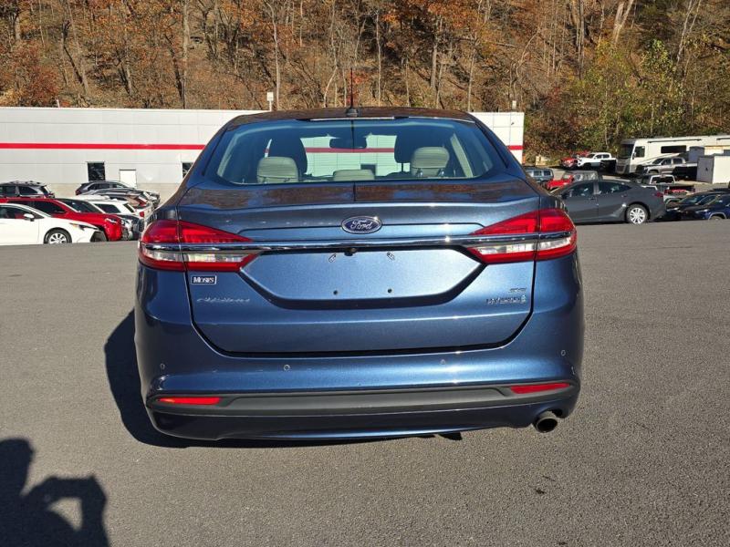 The 2018 Ford Fusion Hybrid SE in Blue Metallic stands out with its sleek, aerodynamic design and vibrant paint finish. The Blue Metallic color is a rich, deep tone that adds both elegance and sportiness to the sedan's modern profile. The SE trim features a bold chrome-accented front grille, projector-style halogen headlamps, LED signature lighting, and clean sculpted body lines. The streamlined roofline and subtly integrated rear spoiler give the Fusion a dynamic, sophisticated stance. Standard 17-inch alloy wheels and body-color side mirrors with integrated turn signals complete its polished look.Performance & EfficiencyEngine & Hybrid System: 2.0-liter Atkinson-cycle 4-cylinder engine paired with an electric motor. Combined system output is 188 horsepower.Transmission: Electronic Continuously Variable Transmission (eCVT) for smooth, seamless acceleration.Drive System: Front-wheel drive.Fuel Economy: Around 43 mpg city, 41 mpg highway, and 42 mpg combined--making it highly efficient for daily commuting and long-distance driving.Ride & Handling: Independent suspension with electric power-assisted steering provides a composed, comfortable, and quiet ride, with the hybrid system tuned for efficiency and smoothness.Interior & ComfortSeating: Cloth-trimmed seating for five, with 10-way power-adjustable driver's seat and power lumbar support. Heated front seats were optional.Space: Spacious cabin with supportive seating and good rear legroom. Trunk space is reduced slightly to accommodate the hybrid battery, but the split-folding rear seat helps maximize practicality.Technology: SYNC infotainment system with voice recognition, Bluetooth, USB port, and available SYNC 3 with an 8-inch touchscreen, Apple CarPlay, and Android Auto integration.Audio: Standard 6-speaker system, with optional premium upgrades [link] Dual-zone electronic automatic climate control, push-button start, rotary gear shift dial, and smart storage spaces throughout the cabin.Design Touches: Clean, modern dashboard layout with soft-touch materials and brushed-metal style accents for a refined look.Safety & Driver AssistanceThe 2018 Fusion Hybrid SE includes a strong suite of safety features, with available driver-assist technologies:Rearview camera with guidelinesAdvanceTrac electronic stability control with brake assistAnti-lock braking system (ABS)Front, side, curtain, and driver knee airbagsTire pressure monitoring systemAvailable Ford Co-Pilot360 features such as blind-spot monitoring, lane-keeping system, adaptive cruise control, and pre-collision assist with automatic emergency braking.SummaryThe 2018 Ford Fusion Hybrid SE in Blue Metallic combines sharp styling, excellent fuel economy, and a comfortable, feature-rich interior. Its hybrid powertrain offers smooth performance with impressive efficiency, while the SE trim adds a balance of convenience, technology, and comfort. The Blue Metallic exterior enhances its modern, upscale design, making it a standout midsize hybrid sedan that blends practicality with sophistication.
