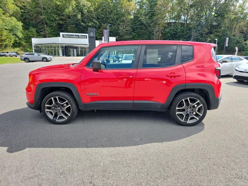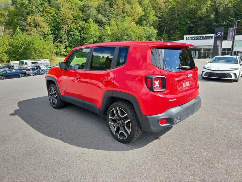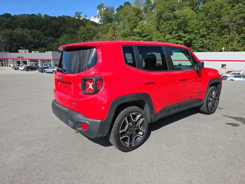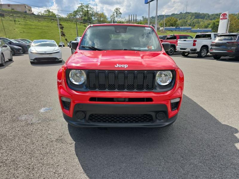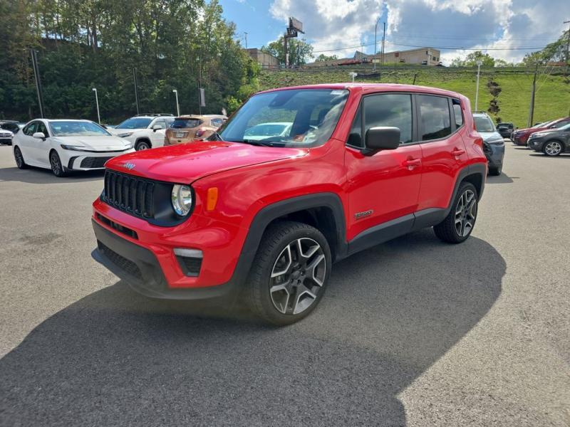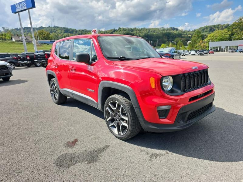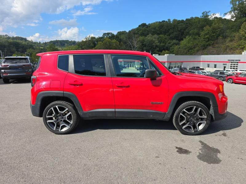 The 2021 Jeep Renegade Jeepster 4WD in Colorado Red brings bold personality and adventurous character to the compact SUV segment. The vivid Colorado Red paint finish makes the Renegade stand out with energy and confidence, perfectly suited for both urban streets and off-road trails. The Jeepster package builds on the Renegade's rugged foundation with distinctive styling cues that emphasize its trail-ready heritage.Front DesignIconic Jeep Grille: Features Jeep's unmistakable seven-slot grille in black, framed by rounded headlights that carry forward the brand's timeless look.Lighting: Halogen headlights paired with daytime running lamps give the Renegade a distinctive face, while available fog lamps add both function and flair.Lower Fascia: A rugged front bumper with black accents and skid-plate styling elements reinforces the SUV's off-road personality.Side ProfileCompact and Bold Stance: The squared-off proportions emphasize strength, while short overhangs enhance maneuverability.Wheels: The Jeepster package equips the Renegade with 19-inch Granite Crystal aluminum wheels, delivering a refined yet tough presence.Body Accents: Black mirror caps and matte black body-side moldings add contrast against the bright Colorado Red finish.Roofline: The slightly tapered roof features functional roof rails in black, ready for carrying gear and enhancing the adventurous look.Rear StylingTailgate & Lighting: Distinctive X-patterned taillamps nod to Jeep's military-inspired heritage, set into the Renegade's squared rear design.Bumper: A rugged black lower bumper with integrated reflectors and skid-plate styling completes the back end.Jeepster Badge: Exclusive Jeepster badging on the tailgate distinguishes this special edition from other Renegade trims.Paint & FinishThe Colorado Red exterior paint is vibrant and energetic, designed to highlight the Renegade's boxy design and adventurous spirit. The deep, glossy red contrasts strikingly with the black trim pieces, wheels, and roof rails, creating a bold and sporty appearance.Overall PresenceThe 2021 Jeep Renegade Jeepster 4WD in Colorado Red is both stylish and functional. Its bold paint finish, unique Jeepster badging, and Granite Crystal wheels set it apart from the standard trims, while rugged Jeep design elements emphasize capability. Compact yet tough, it embodies the Jeep brand's adventurous DNA in a vibrant, city-friendly package.