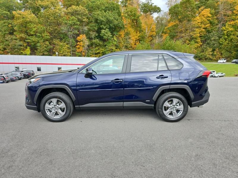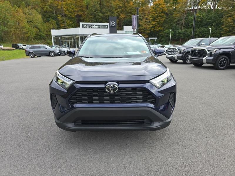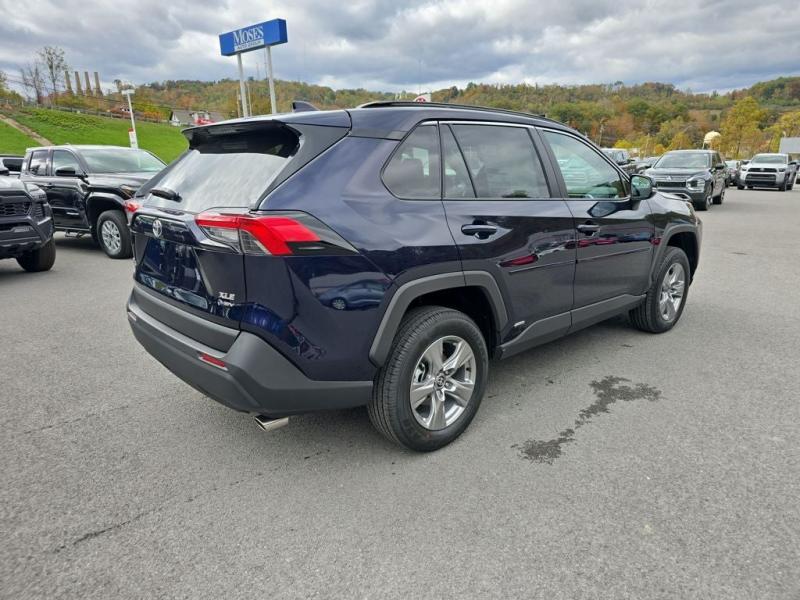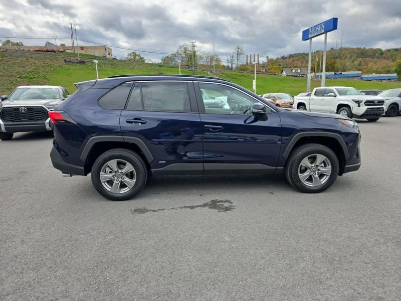 2025 Toyota RAV4 Hybrid XLE AWD Blueprint with Black Fabric InteriorThe 2025 Toyota RAV4 Hybrid XLE blends style, capability, and efficiency, making it one of the most popular choices in the Toyota lineup. Finished in bold Blueprint with a comfortable black fabric interior, this all-wheel drive hybrid SUV delivers confident handling, impressive fuel economy, and advanced features designed for everyday convenience.Standard & Comfort Features XLE PackageThe XLE trim enhances the RAV4s versatility with premium touches, including:17-inch alloy wheelsPower-adjustable drivers seat with lumbar supportDual-zone automatic climate control with rear ventsLED headlights and Daytime Running LightsSmart Key System with push-button startPower moonroof for open-air drivingTechnology FeaturesStay connected and protected with advanced Toyota technology, including:9-inch multimedia touchscreen displayApple CarPlay & Android Auto integrationBluetooth hands-free calling and streaming audioUSB-C charging ports for all devicesToyota Safety Sense 2.5 with Pre-Collision System, Lane Departure Alert, Dynamic Radar Cruise Control, and Road Sign AssistBlind Spot Monitor with Rear Cross-Traffic AlertHybrid Fuel Efficiency & WarrantyThe 2025 RAV4 Hybrid XLE AWD offers excellent fuel efficiency, saving you time and money at the pump while lowering emissions. Toyota hybrids are also backed with an 8-year/100,000-mile hybrid warranty and a 10-year/150,000-mile hybrid battery warranty, ensuring lasting confidence in your investment.Toyota Warranty & ToyotaCareIn addition to hybrid coverage, every RAV4 includes Toyotas 3-year/36,000-mile basic warranty and 5-year/60,000-mile powertrain warranty. With ToyotaCare, youll also receive 2 years or 25,000 miles of complimentary scheduled maintenance plus 24/7 roadside assistance, making ownership worry-free.Why Buy from Moses Toyota of Morgantown?At Moses Toyota Mitsubishi of Morgantown, were proud to deliver a stress-free, transparent car-buying experience. As part of the Moses Auto Group family, we combine award-winning customer service, knowledgeable staff, and long-term support to make sure you enjoy every mile in your new Toyota.Drive smarter and more efficiently with the 2025 Toyota RAV4 Hybrid XLE AWDavailable now at Moses Toyota of Morgantown.