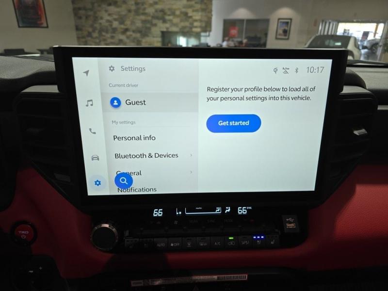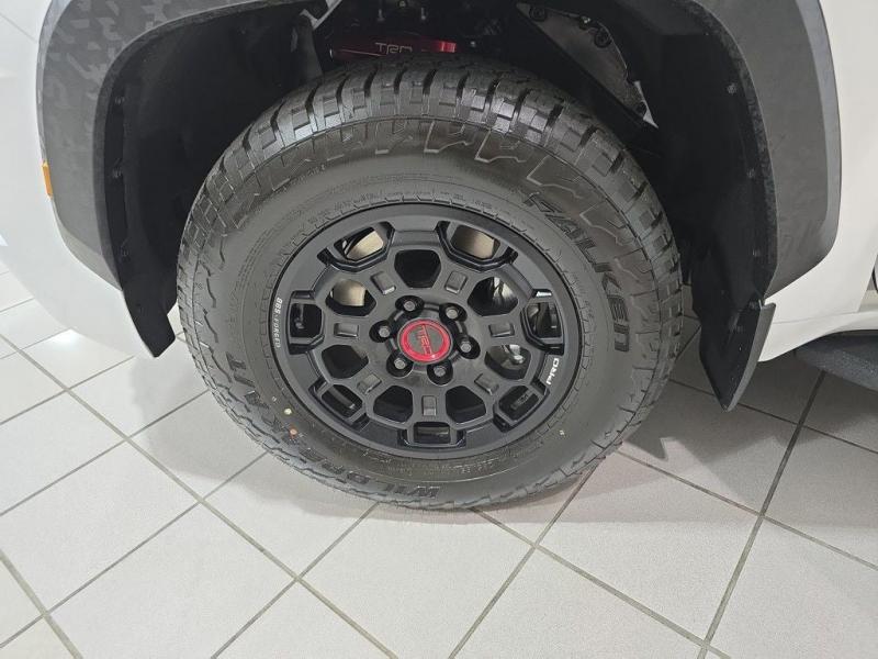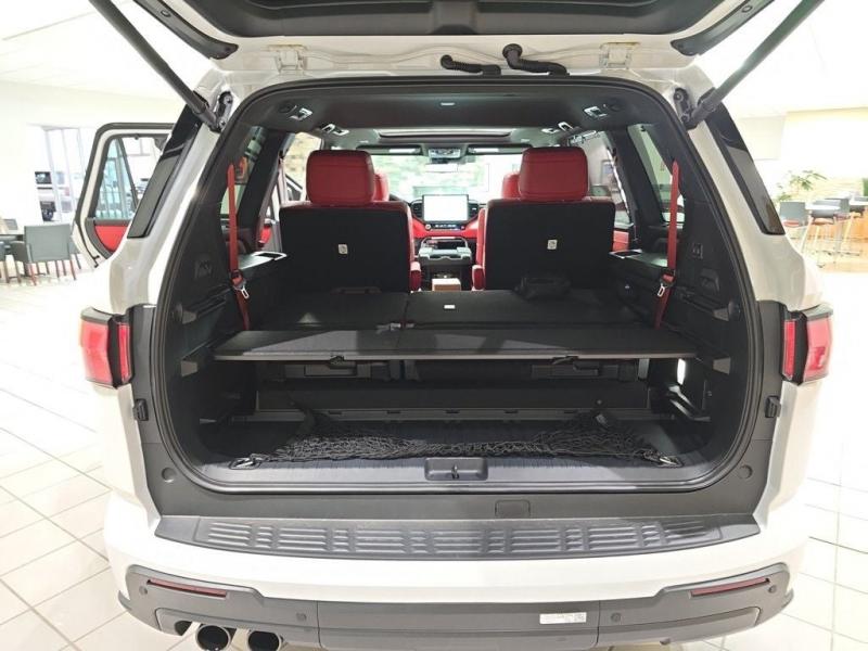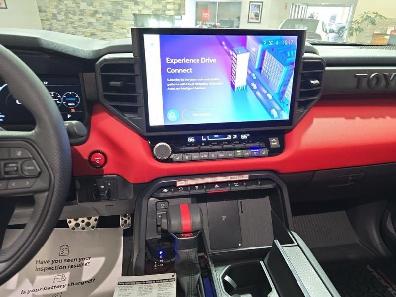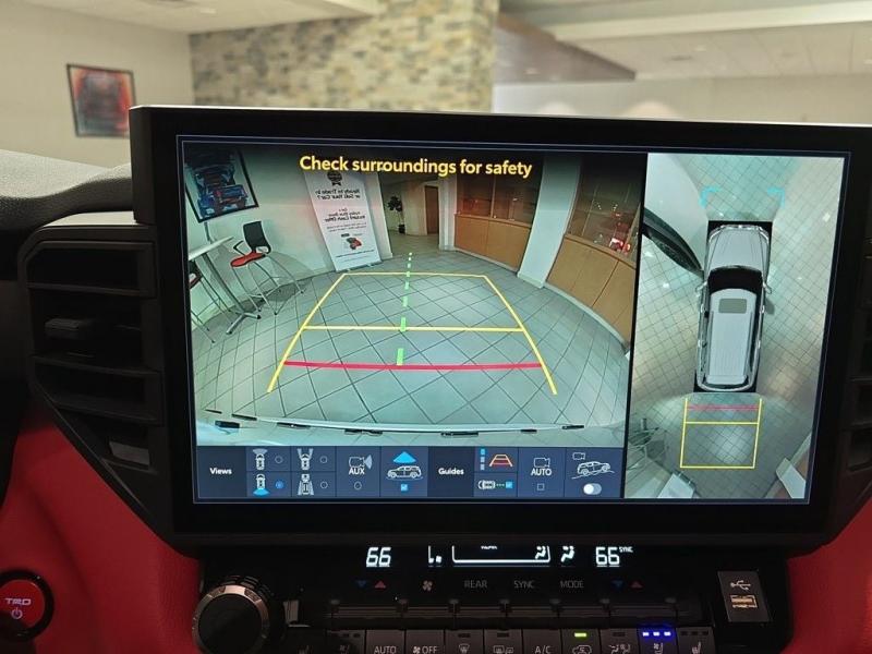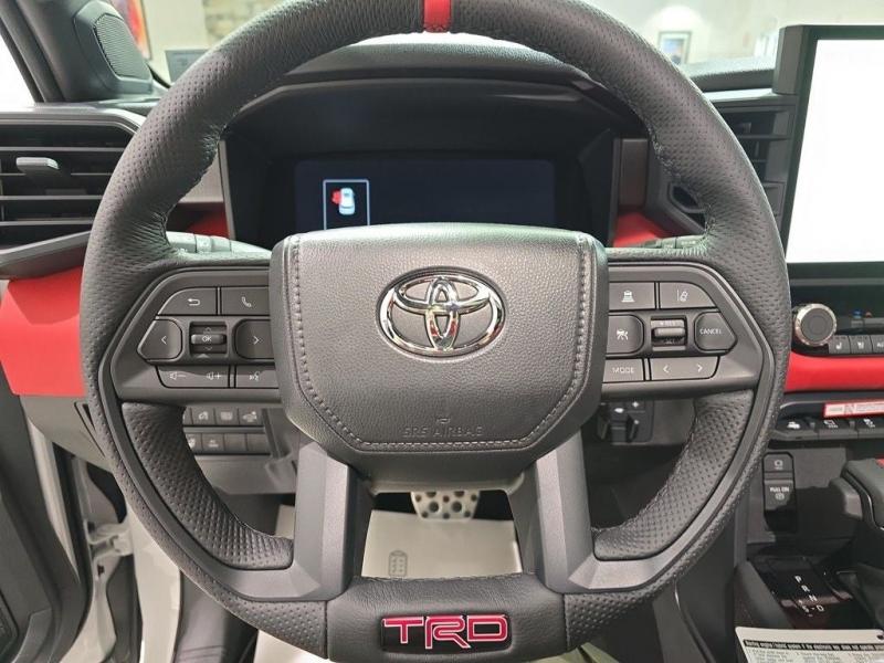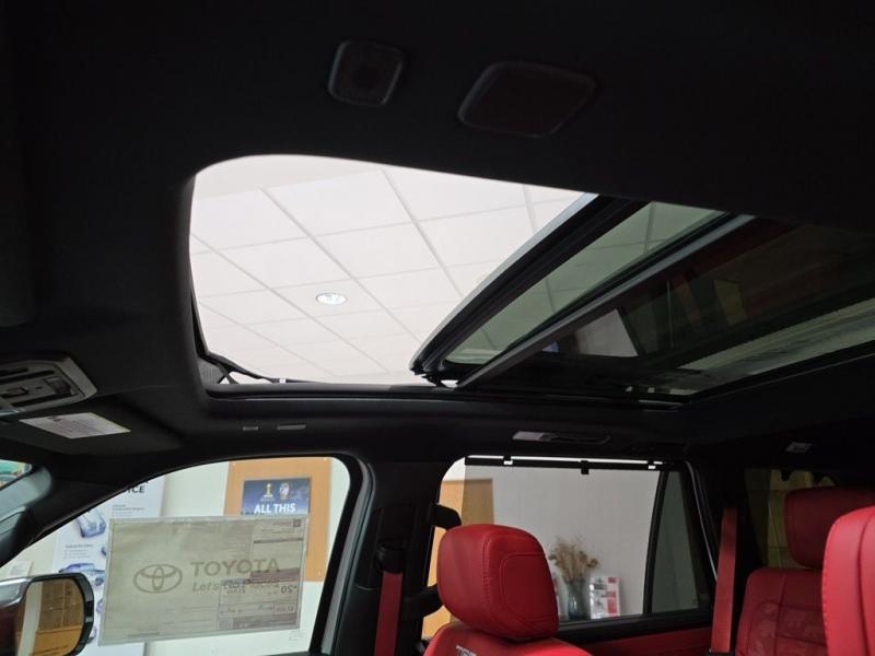 2025 Toyota Sequoia TRD Pro Ice Cap | Cockpit Red Interior | 4WD | Full-Size Power, Off-Road MasteryUncompromising capability meets aggressive styling and modern hybrid muscle. The 2025 Toyota Sequoia TRD Pro in striking Ice Cap White with bold Cockpit Red interior trim is the ultimate full-size SUV for thrill-seekers who demand rugged utility, cutting-edge tech, and head-turning design all wrapped in TRD-tuned performance and 4WD confidence. i-FORCE MAX Hybrid Powertrain + TRD Off-Road Engineering3.5L Twin-Turbo V6 Hybrid (i-FORCE MAX)Cranks out an impressive 437 horsepower and 583 lb-ft of torque10-Speed Automatic Transmission delivers power with precision and smoothness4-Wheel Drive (4WDR) with TRD-tuned FOX Internal Bypass Shocks, skid plates, and Multi-Terrain Select systemTrail-ready with Crawl Control, locking rear differential, and increased ground clearance Ice Cap Exterior Rugged EleganceThe Ice Cap White finish delivers a bold, clean look that stands out on any terrainSignature TOYOTA heritage grille, integrated LED light bar, black roof rails, and TRD PRO stamped skid plate complete the aggressive exterior18-inch black TRD alloy wheels wrapped in all-terrain tires provide performance and presence Cockpit Red Interior Sport Meets StyleExclusive Cockpit Red SofTex-trimmed seating with TRD logos and contrast stitchingHeated and ventilated front seats, power-folding third row, and captains chairs in the second rowRed interior accents, black dash trim, and a panoramic moonroof for an adventurous cabin experience Advanced Technology & Comfort14-inch Toyota Audio Multimedia touchscreen with wireless Apple CarPlay & Android AutoJBL Premium Audio system, 12.3-inch digital instrument cluster, and Head-Up DisplayQi wireless charging, multiple USB-C ports, and standard Wi-Fi Connect Safety That Goes the DistanceToyota Safety Sense 3.0:Pre-Collision System with Pedestrian DetectionLane Tracing Assist & Full-Speed Dynamic Radar Cruise ControlBlind Spot Monitor, Rear Cross-Traffic Alert, and Advanced Park AssistTowing capacity of up to 9,520 lbs, plus trailer sway control and integrated brake controller Why the 2025 Sequoia TRD Pro in Ice Cap with Cockpit Red?This is Toyotas most off-road capable and visually striking Sequoia yet. With hybrid power, full 4WD functionality, and a bold contrast between the Ice Cap exterior and Cockpit Red interior, this SUV is built for those who want luxury, space, and adventure-ready performance all in one uncompromising package.