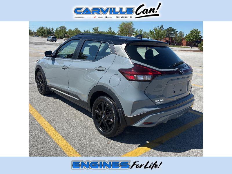 Summary: Our experienced Carville Chrysler Dodge Jeep Ram team is excited to assist you in your next vehicle purchase. Welcome to the best source for online deals. Vehicle Details: 2023 Nissan Kicks SR - stylish, efficient compact SUV located in Greeneville, TN. This well-maintained Nissan Kicks arrives with a CARFAX Clean Report, giving you added confidence in its history and condition. Powered by a responsive 1.6L 4-cylinder gasoline engine paired with front-wheel drive, the SR trim blends nimble handling with a comfortable ride for city commutes and weekend escapes. Inside, the cabin features a modern layout with user-friendly technology. Apple CarPlay integration keeps your smartphone apps and navigation at your fingertips, while XM Radio delivers an expansive selection of entertainment and information on the go. Remote Start offers convenience during seasonal weather, allowing you to warm up or cool down the interior before stepping in. Safety features include Lane Departure Warning to help you stay centered and alert on longer drives. Exterior styling on the SR model brings sporty accents and an aerodynamic profile that stands out in traffic. Practical cargo space and versatile seating make this Nissan Kicks a great option for small families, commuters, or anyone seeking a compact crossover with thoughtful features. Located in Greeneville, TN, this 2023 Nissan Kicks SR combines a clean vehicle history, modern tech, and practical design-ready for test drives and immediate availability at our Greeneville location. Contact us to schedule a viewing. Equipment: Anti-lock brakes are standard on this 2023 Nissan Kicks . This Nissan Kicks is accented with premium quality alloy wheels. It offers Android Auto for seamless smartphone integration. This unit offers Apple CarPlay for seamless connectivity. This 2023 Nissan Kicks offers Automatic Climate Control for personalized comfort. Protect the Nissan Kicks from unwanted accidents with a cutting edge backup camera system. Good News! This certified CARFAX 1-owner vehicle has only had one owner before you. Our dealership has already run the CARFAX report and it is clean. A clean CARFAX is a great asset for resale value in the future. Maintaining a stable interior temperature in it is easy with the climate control system. It features cruise control for long trips. The Electronic Stability Control will keep you on your intended path. This Nissan Kicks has a 4 Cyl, 1.6L high output engine. Know you and your passengers are protected with the front and rear side curtain airbags in the Nissan Kicks. The vehicle has fog lights for all weather conditions. The Nissan Kicks is equipped with front air bags. Stay safe with additional front side curtain airbags. This vehicle is front wheel drive. The Nissan Kicks is equipped with a gasoline engine. This small suv features a hands-free Bluetooth phone system. Quickly unlock the Nissan Kicks with keyless entry. This small suv's Lane Departure Warning helps keep you in your lane. The state of the art park assist system will guide you easily into any spot. This unit is accented with a stylish rear spoiler. Start this 2023 Nissan Kicks from inside with remote start. The Nissan Kicks has satellite radio capabilities. This small SUV will zip through traffic. This small suv has an adjustable telescoping wheel that allows you to achieve a perfect fit for your driving comfort. The traction control system on this Nissan Kicks instantly senses tire slippage and executes minute power adjustments to maintain traction at all speeds. with XM/Sirus Satellite Radio you are no longer restricted by poor quality local radio stations while driving this model. Anywhere on the planet, you will have hundreds of digital stations to choose from. Packages: Special Paint - Aspen White/super Black 17" Black Alloy Wheels Carpeted Floor Mats with Cargo Mat Splash Guards Grain (4 Piece) **Equipment listed is based on original vehicle build and subject to change. Please confirm the accuracy of the included equipment by calling the dealer prior to purchase.** Additional Information: While we make every effort to ensure the data listed here is correct, there may be instances where some of the factory rebates, incentives, options or vehicle features may be listed incorrectly as we get data from multiple data sources. Dealer cannot be held liable for data that is listed incorrectly. All prices plus tax, tags, dealer doc fee of $699. All reasonable offers will be reviewed.