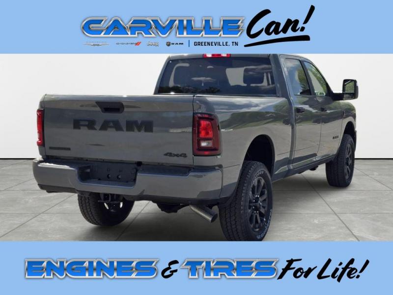 Summary: 2026 Ram 2500 Big Horn 4WD with 6.7L Diesel - located in Greeneville, TN - combines serious capability with modern comfort for drivers who demand power and refinement. The robust 6-cylinder 6.7L turbodiesel delivers exceptional torque for towing and hauling, while the 4WD system provides confident traction on work sites and rural roads. The Off-Road Package enhances durability and performance with upgraded suspension and protective elements, making this truck ready for tougher terrain. Vehicle Details: Inside, the Big Horn cabin balances practicality with technology. Hands Free Bluetooth and Apple CarPlay keep you connected and entertained on long drives, while Adaptive Cruise Control adds convenience and safety on highways. Rear Parking Sensors assist with precise maneuvering in tight spaces, helping reduce stress in parking lots and on job sites. Thoughtfully styled with a bold exterior and durable interior finishes, this Ram 2500 offers versatile storage and comfortable seating for crew and cargo alike. Safety-focused features and towing-equipped engineering make it an excellent choice for contractors, outdoor enthusiasts, and anyone needing heavy-duty capability without sacrificing modern amenities. This 2026 Ram 2500 Big Horn 4WD with the 6.7L diesel engine is ready for immediate delivery in Greeneville, TN. Contact our sales team to schedule a test drive and experience the combination of power, technology, and rugged performance firsthand. Equipment: Apple CarPlay: Seamless smartphone integration for this unit - stay connected and entertained on the go! It has automated speed control that adjusts to maintain a safe following distance, enhancing highway driving convenience. Bluetooth technology is built into it, keeping your hands on the steering wheel and your focus on the road. The vehicle is equipped with the latest generation of XM/Sirius Radio. This model's Forward Collision Warning feature alerts drivers to potential front-end collisions. See what's behind you with the back up camera on this Ram 2500. An off-road package is equipped on the vehicle. The state of the art park assist system will guide you easily into any spot. The Ram 2500 comes equipped with Android Auto for seamless smartphone integration on the road. This unit keeps you comfortable with Auto Climate. The installed navigation system will keep you on the right path. Never get into a cold vehicle again with the remote start feature on this Ram 2500. Packages: Quick Order Package 24Z Big Horn. Night Edition: Firestone Brand Tires; Gloss Black Nostrils/mic Black Grille; LT285/60R20E OWL On/off Road Tires; Black Exterior Truck Badging; 20" X 8.0" Black Painted Aluminum Wheels; Body Color Grille-Surround; Black Interior Accents; Black Wheel Center Hub; Painted Front Bumper; Painted Rear Bumper. Big Horn Level 1 Plus Equipment Group: Google Android Auto; SiriusXM Radio Service; For Details. Visit [link] For More Info. Call [phone]; Integrated Voice Command with Bluetooth; Emergency Vehicle Alert System (EVAS); 12" Touchscreen Display; Glove Box Lamp; Auto Power-Folding Mirrors; Footwell Courtesy Lamp; Anti-Spin Differential Rear Axle; Mirror Running Lights; MOPAR Deployable Bed Step; Alexa Built-In; Apple CarPlay; Power-Adjustable Convex Aux Mirrors; Forward and Reverse Utility Lights; Locking Lower Glove Box; Remote Start System; 9 Alpine Speakers with Subwoofer; Disassociated Touchscreen Display; Dual Glove Boxes; 2nd Row in Floor Storage Bins; Rear View Auto Dim Mirror; Rear Dome with On/off Switch Lamp; LED Bed Lighting; Connectivity - US/Canada; GPS Navigation; 4G LTE Wi-Fi Hot Spot; GPS Antenna Input; Exterior Mirrors with Heating Element; SiriusXM with 360L; Global Telematics Box Module; Connected Travel and Traffic Services; Foam Bottle Insert (door Trim Panel); Black Exterior Mirrors; Big Horn Instrument Panel Badge; Off-Road Info Pages; Selectable Tire Fill Alert; Trailer Tow Pages; HD Radio; Uconnect 5 Navigation with 12.0" Display Radio; Power Heated Folding Telescopic Mirrors; Exterior Mirrors with Supplemental Signals; Steering Wheel Mounted Audio Controls; Exterior Mirrors Courtesy Lamps; Air Conditioning ATC with Dual Zone Control; MOPAR Spray in Bedliner; Power Adjust Mirrors; Luxury Steering Wheel; Power Telescoping Mirrors. Quick Order Package 2UZ Big Horn. 5th Wheel/gooseneck Towing Prep Group. Anti-Spin Differential Rear Axle. MyFlexCare Service Diesel. Premium Cloth Bucket Seats. Remote Start System. Instrument Panel Mounted Auxiliary Switches. MOPAR Front and Rear Rubber Floor Mats. Clearance Lamps. Power 2-Way Driver Lumbar Adjust. **Equipment listed is based on original vehicle build and subject to change. Please confirm the accuracy of the included equipment by calling the dealer prior to purchase.**