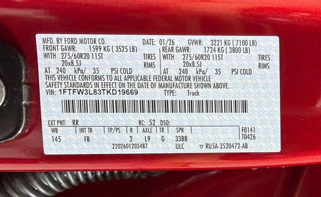 - ENGINE: 3.5L V6 ECOBOOST -inc: auto start-stop technology 3.31 Axle Ratio GVWR: 7 100 lbs Payload Package