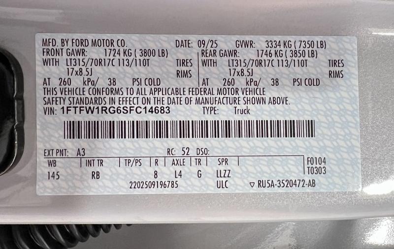 - Vin Number 1FTFW1RG6SFC14683