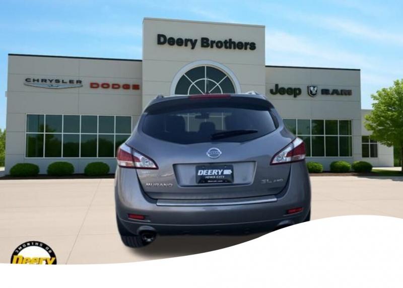 This Local Trade In has a Clean CARFAX and is Deery Certified! It has super low mileage, and is in immaculate shape for the age! It was traded in for a Deery Certified Nissan Rogue! ** Deery Certified, ** Clean CARFAX, ** Local Trade In, ** AWD, 18' Aluminum Alloy Wheels, Auto-dimming Rear-View mirror, Exterior Parking Camera Rear, Heated Front Bucket Seats, Heated front seats, Heated steering wheel, Leather Appointed Seat Trim, Memory seat, Power driver seat, Power Liftgate, Power moonroof, Power passenger seat, Radio: AM/FM/CD w/Bose Audio System, Rain sensing wipers. Clean CARFAX. Certified. Odometer is 31563 miles below market average! Recent Arrival! Platinum Graphite Metallic 2011 Nissan Murano SL 4D Sport Utility 3.5L V6 DOHC 24V 18/23 City/Highway MPG CVT AWD Certification Program Details: DEERY CERTIFIED PRE-OWNED DETAILS: - $0 Deductible - 3 Months or 3,000 Miles (whichever comes first ) - Systems Covered: Gasoline/ Diesel Engine , Transmission , Drive Axle, Hybrid Components , Filters, Lubricants Taxes and Seals and Gaskets ** See Dealer for More Information. Awards: * 2011 [link] 10 Best Used All-Wheel-Drive Vehicles Under $10,000 Serving Iowa City, Cedar Rapids, Waterloo, North Liberty, Davenport, Muscatine, Quad Cities, Des Moines, Keokuk, Mount Pleasant, Washington, and Dubuque. Don't miss out! Give us a call at [phone] to confirm availability and schedule a test-drive.
